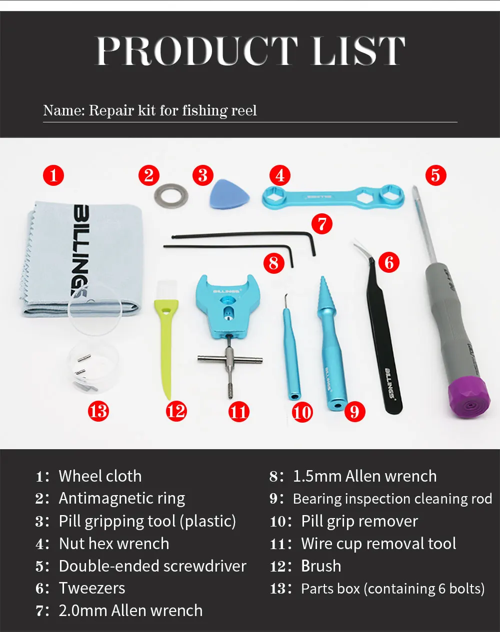 1 Juego de removedor de pasadores de rodamiento de carrete de pesca, llave de mantenimiento, destornillador, pinzas, Kit de herramientas de reparación, carrete de Baitcasting modificado DIY