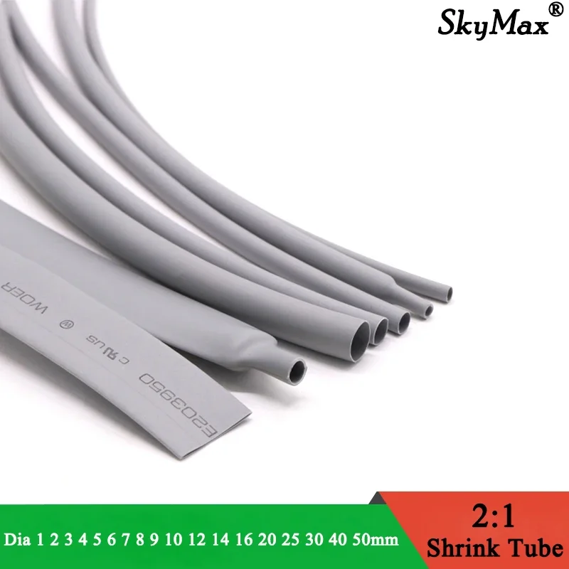 1 metro gris diámetro 1 2 3 4 5 6 7 8 9 10 12 14 16 20 25 30 40 50 mm Tubo termorretráctil 2:1 funda de Cable térmico de poliolefina aislada