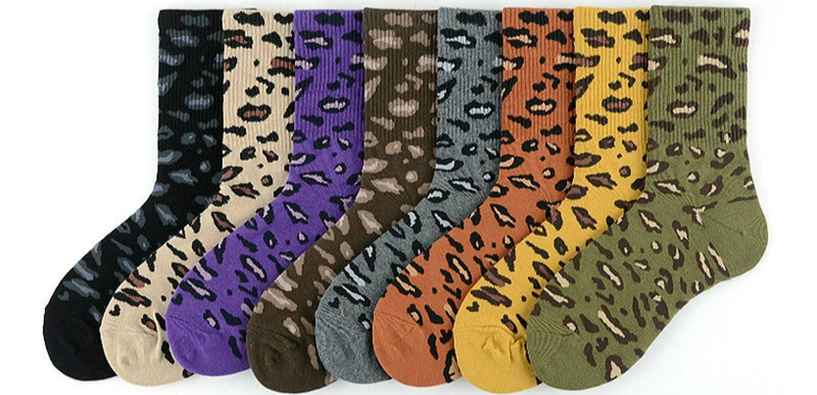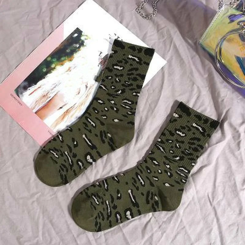 1 par de calcetines de tubo medio para hombres y mujeres, calcetines de algodón con estampado de leopardo y personalidad, calcetines de moda europeos y americanos de Hip Hop