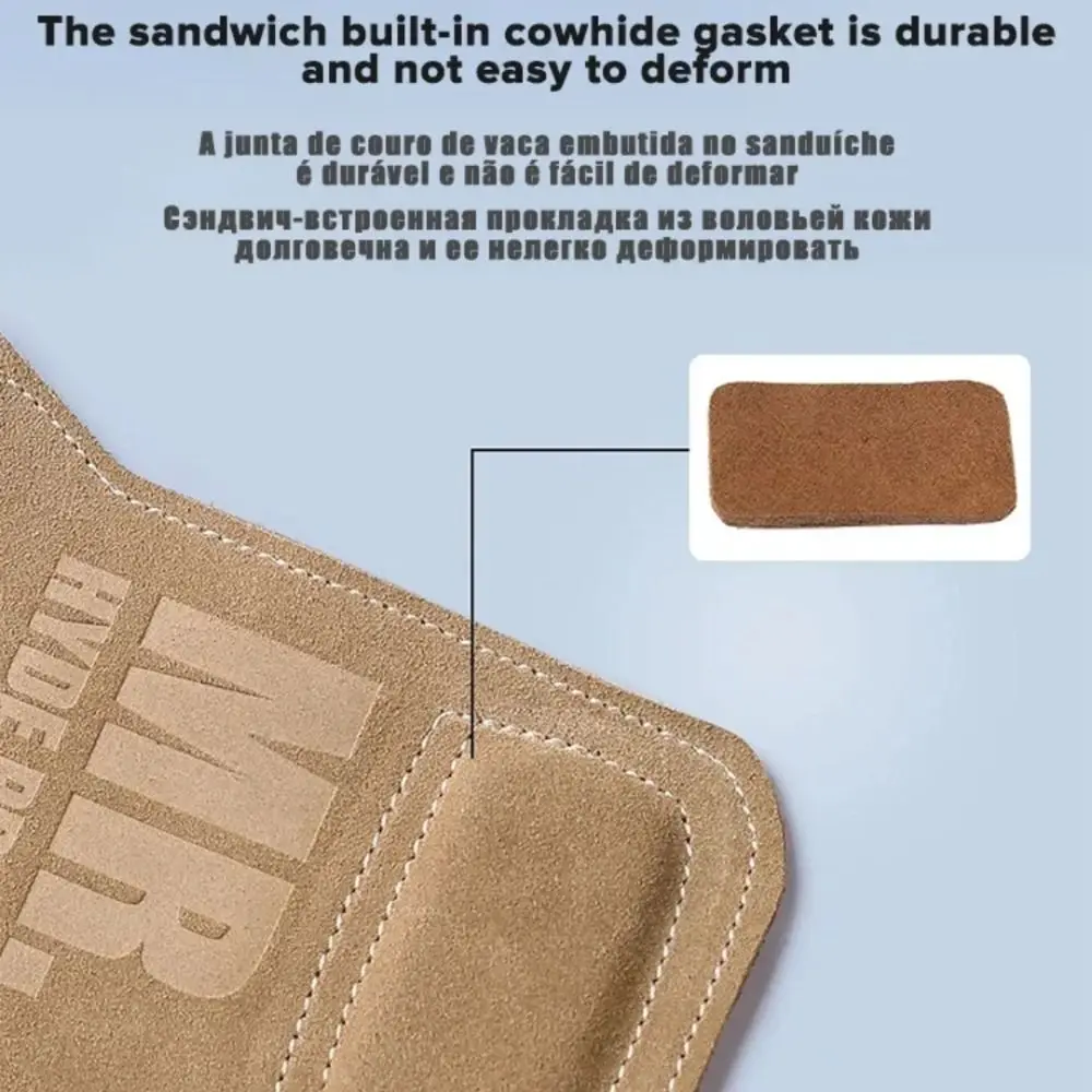 Hecho de piel de vaca doble, con almohadilla antideslizante de silicona, previene eficazmente el deslizamiento durante el ejercicio, se usa y es duradero.