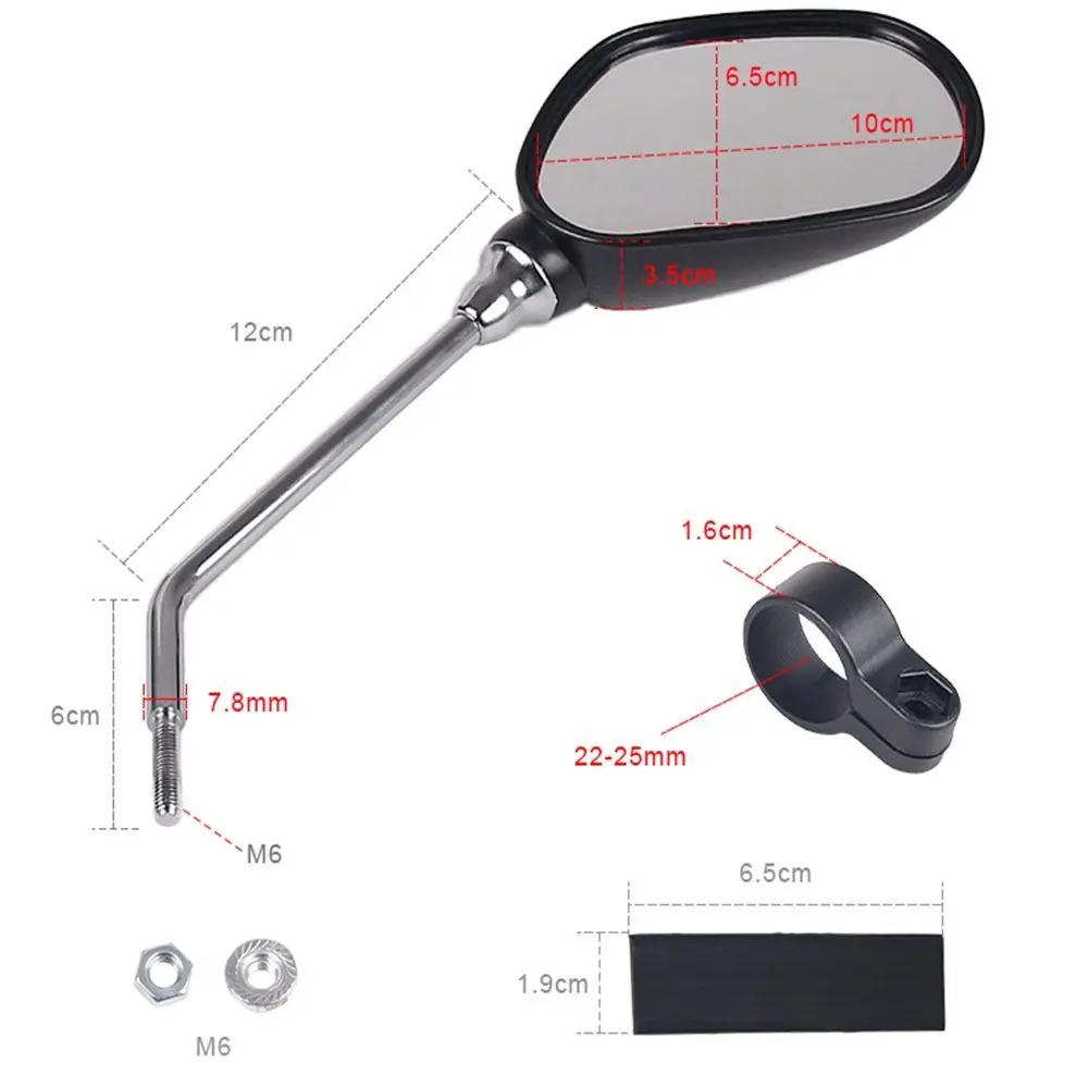 Condition: high quality Material: Glass+ABS Color: Black Quantity:1Pair/Set Package includes: 1 Pair Bicycle Mirrors Adjustable to any angle. Rectangle mirror provides wider view. Compact design and easy installation. Features: Designed for cycling use, easy to watch rear sight; Glass mirror, rather than plastic plated, big size for wide range back view; Horizontal or tilting degree adjustable; Plastic holder made of new ABS material; Connect Rod plated in chrome; With light reflector, clearly visible at on-coming light at night; Handlebar mount, fits tube Dia. 22-25mm Note: For the use on electric bike, scooter or motorcycle, be kindly noted that the mount bolt on this mirror is M6. Please allow 1-3mm error due to manual measurement. pls make sure you do not mind before you bid. Due to the difference between different monitors, the picture may not reflect the actual color of the item. Thank you!