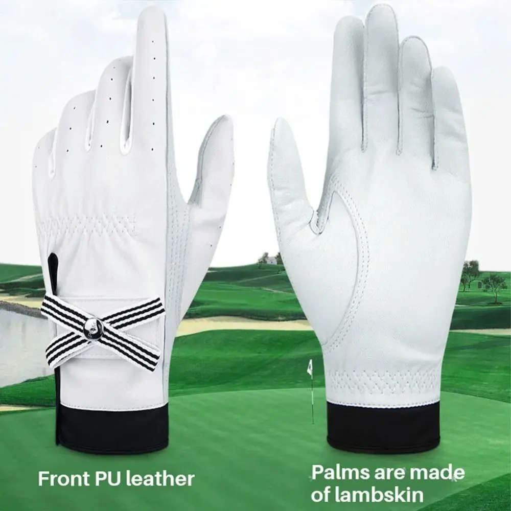 La parte delantera de los guantes de golf es de cuero PU, la palma está hecha de material de piel de cordero, ajuste de articulación alto, agarre más cómodo.