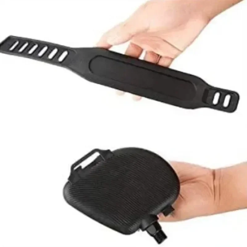 1 par de pedales de bicicleta de Fitness negros de longitud ajustable con piezas de repuesto de banda de pie de bicicleta fija resistente al desgaste de alta dureza