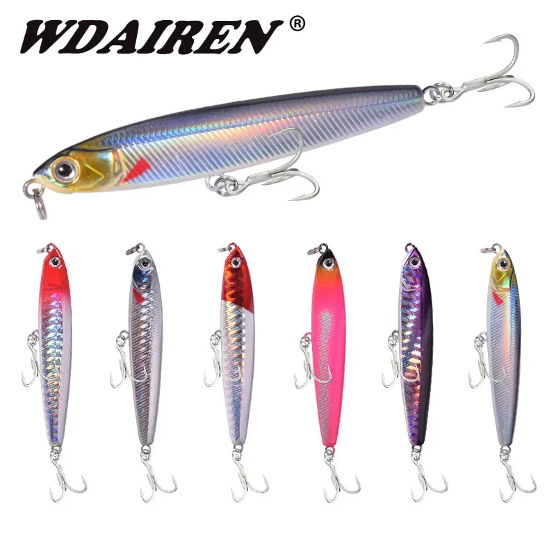 Señuelos de Pesca de lápiz de hundimiento, aparejos Wobblers de vibración, cebo Artificial de plástico con anzuelo triple fuerte para lubina, trucha y Lucio, 1 piezas