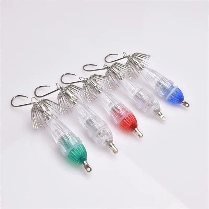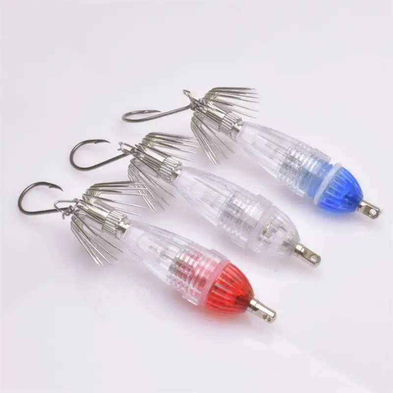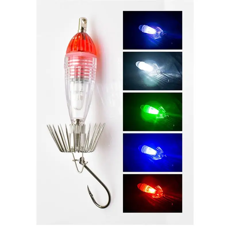 1 pieza de luz LED de calamar con gancho electrónico con gancho para paraguas, luz de señuelo para peces, luz de cebo de calamar impermeable de agua profunda
