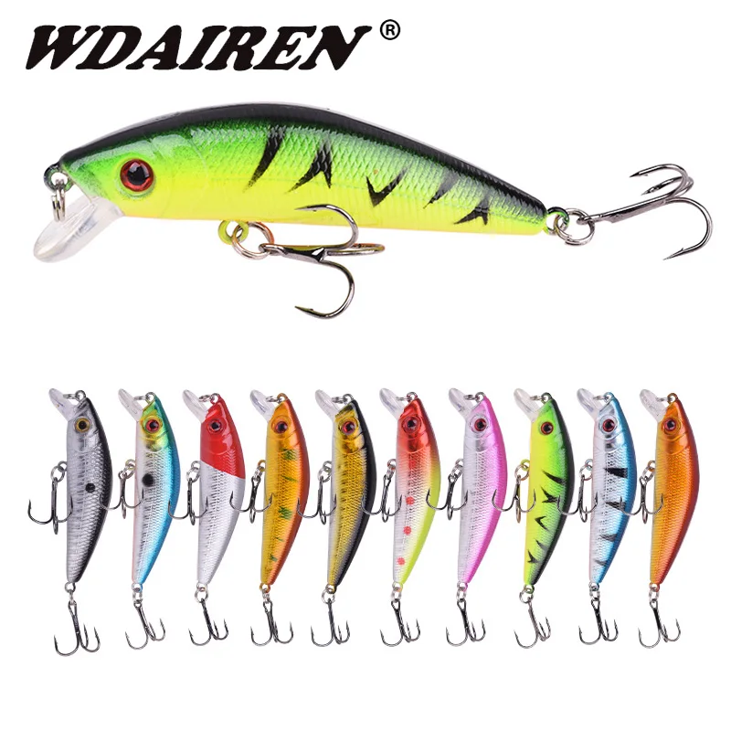 Señuelo de pesca Minnow de 7,2cm, 7.8g, Wobblers hundidos, cebos duros artificiales de plástico con 6 uds.# Ganchos triples para bajos Crankbaits