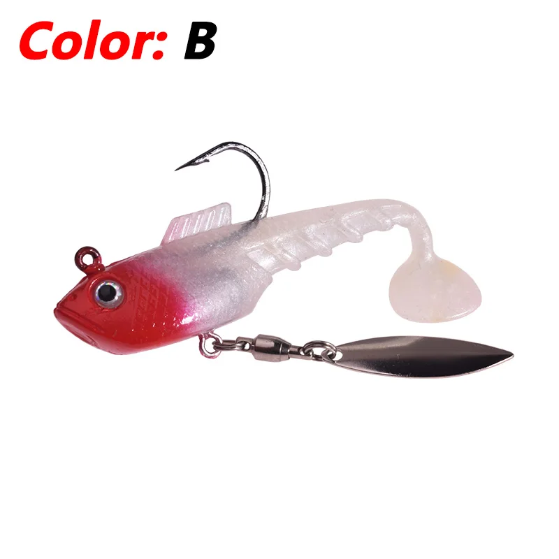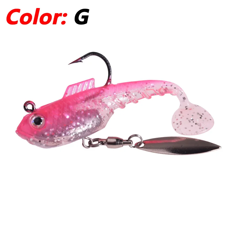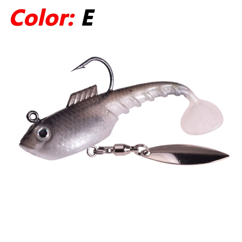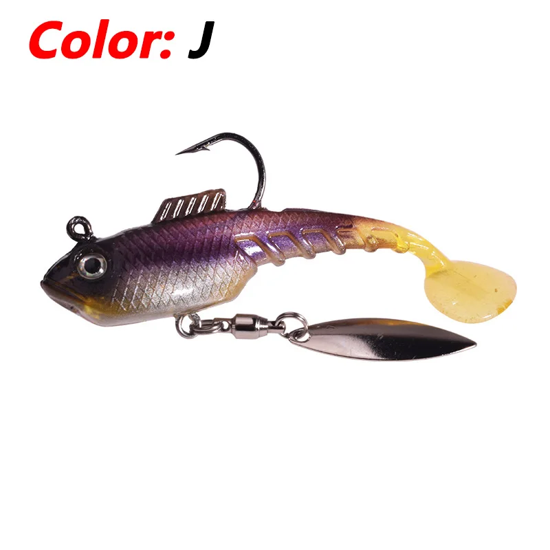 1 Uds. Cuchara de Metal giratoria cebo suave de goma 65mm 11g T cola SwimBait Jig ganchos Wobblers señuelo de pesca para lubina trucha Lucio carpa
