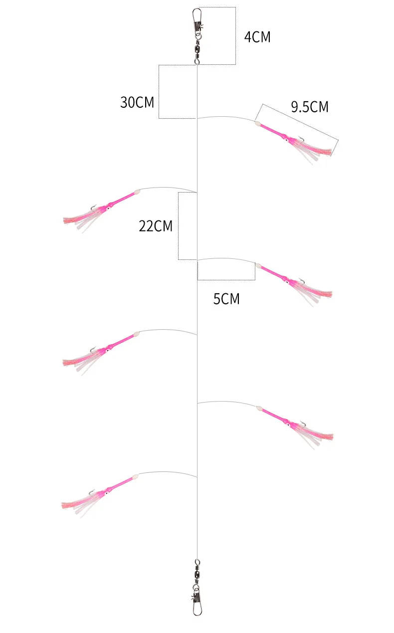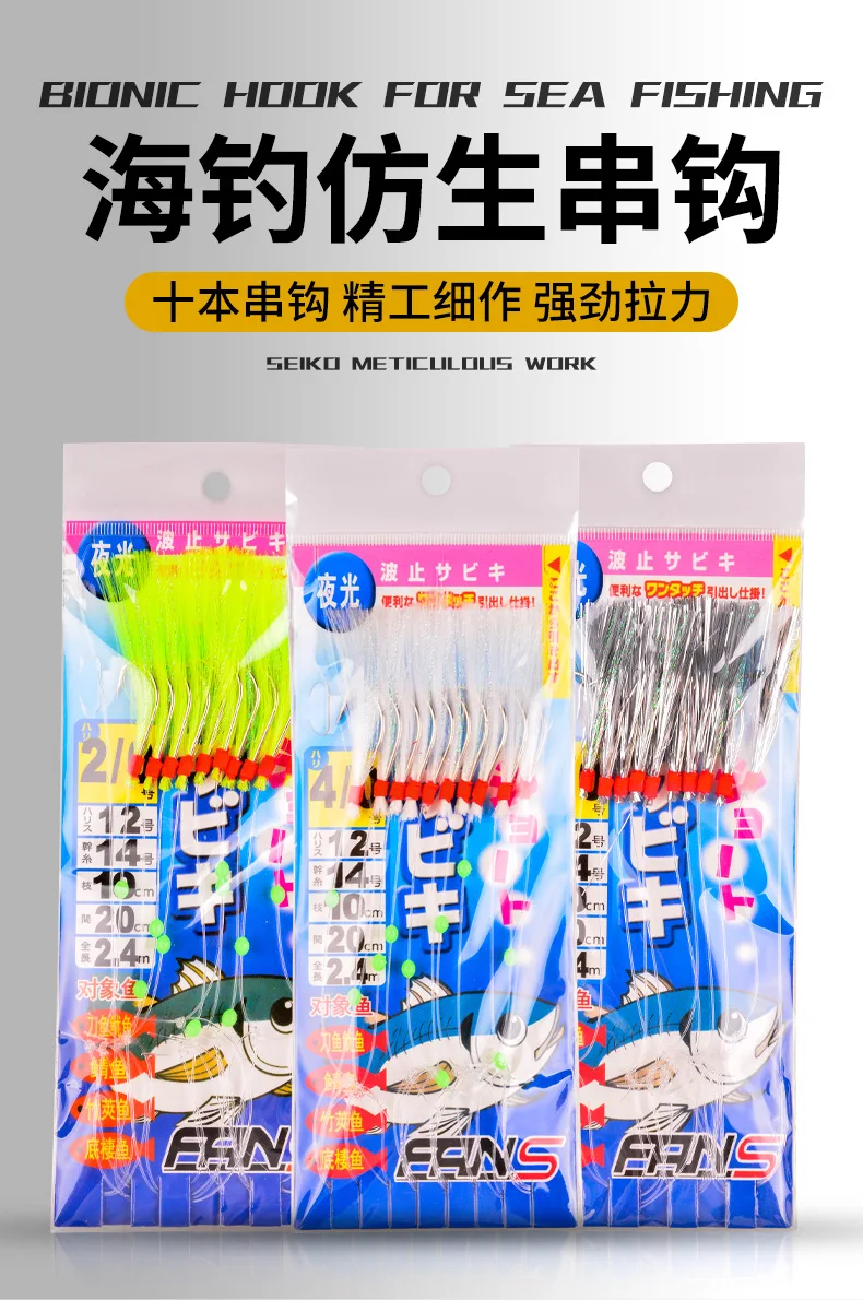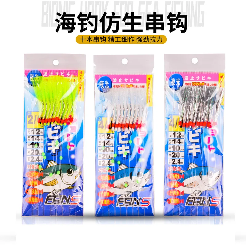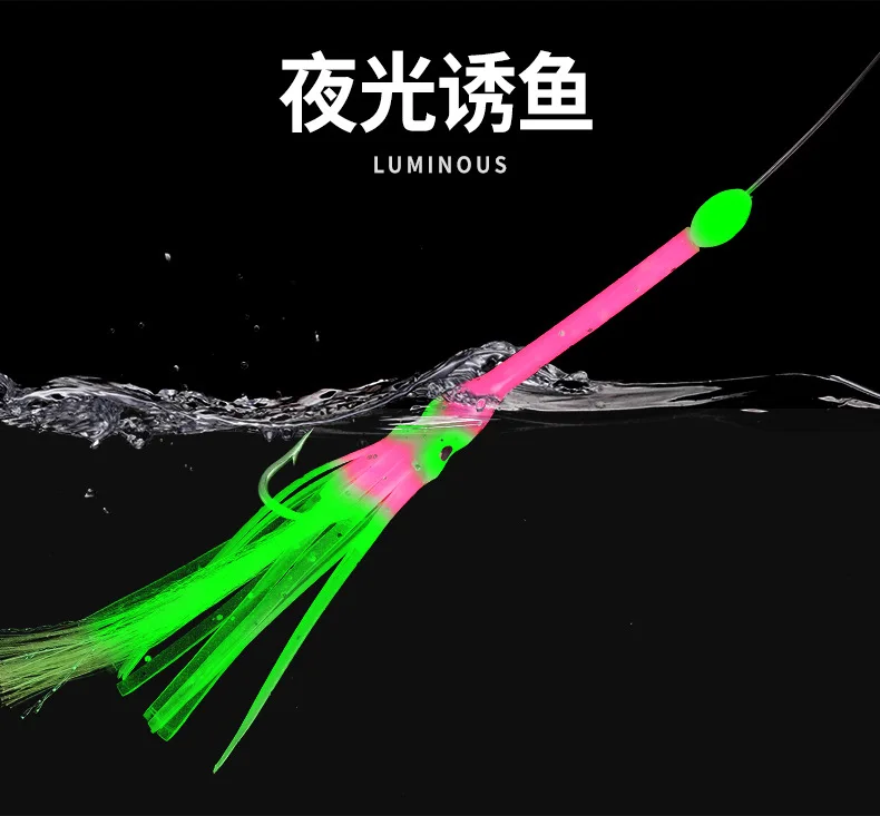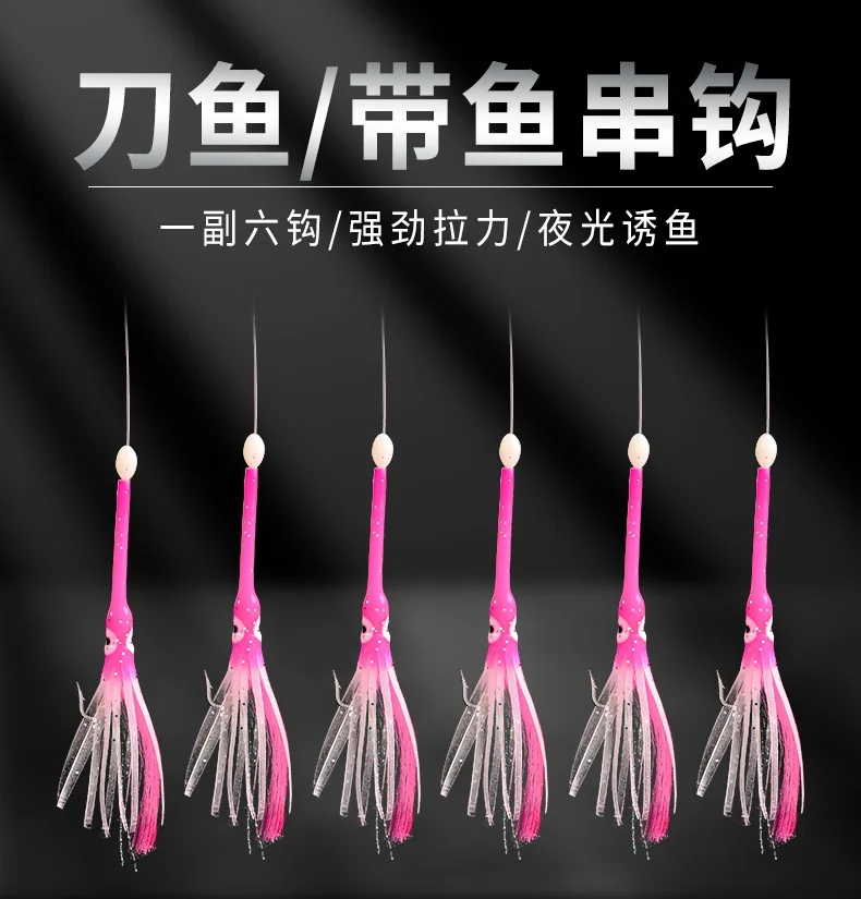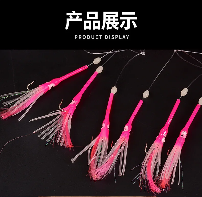 1 set 6-Hooks Luminous Octopus Mackerel Feathers Sabiki Bait Rigs with String Lures Fishing Squid Marathon Rigs Fishing Lure Set