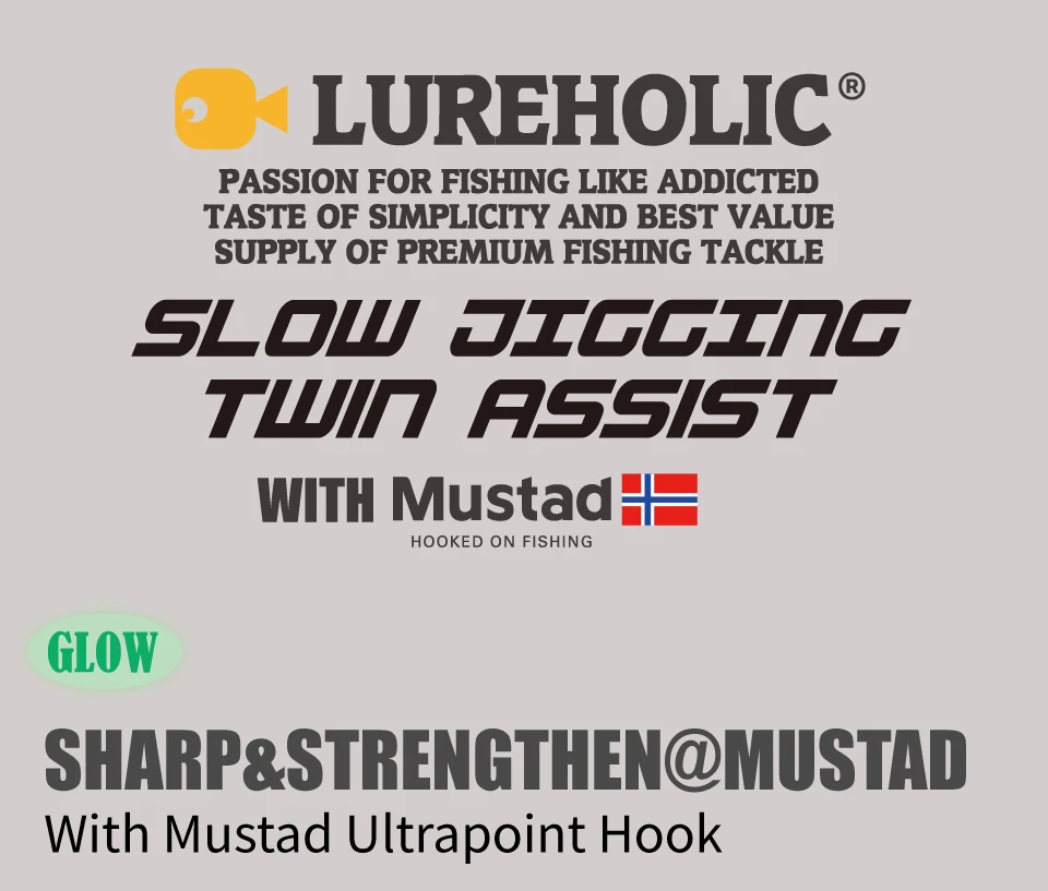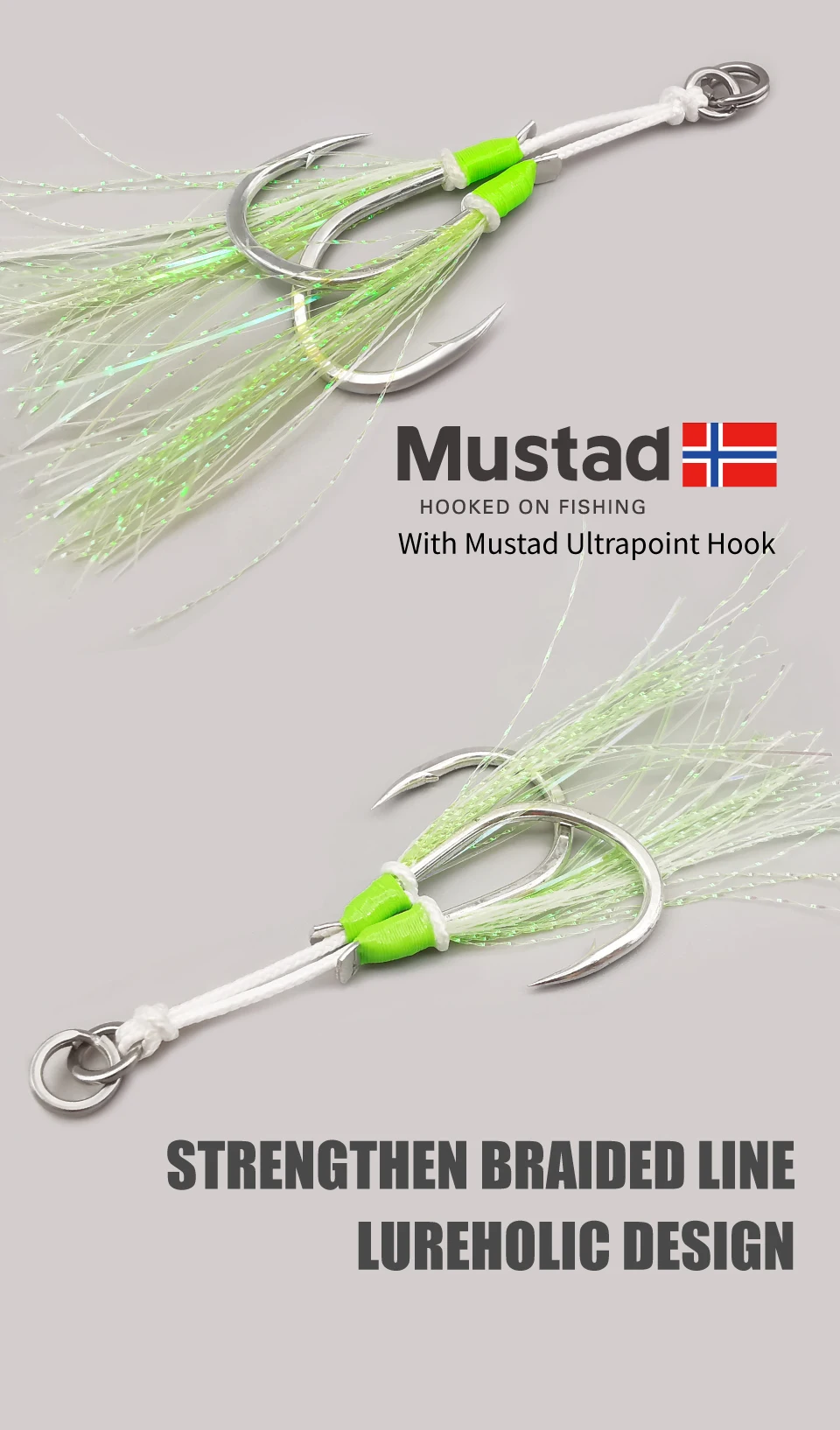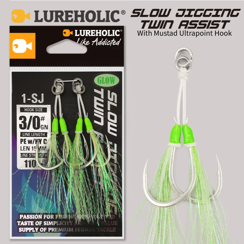 1-SJ Slow Jigging Twin Assist met Mustad-haken Glow Jigging-haken Zeebrasem Zeevishaak