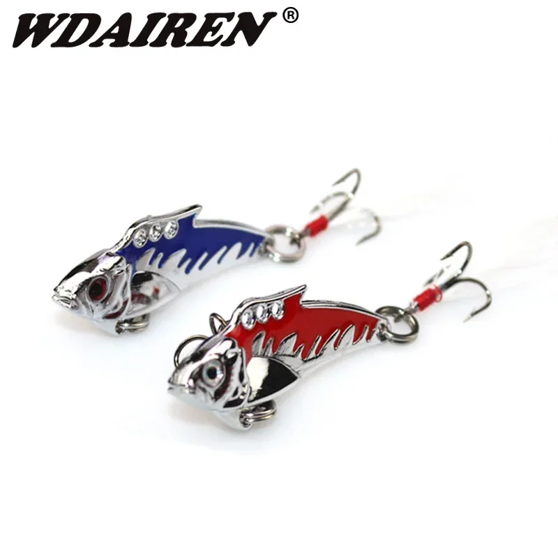 1pcs 10g 4.5cm Metal Spoon Fishing Lure Crankbait VIB Wobbler Bass Crank Bait Treble With 2 Hooks Bait Lead Fish 6 Colors FA-334