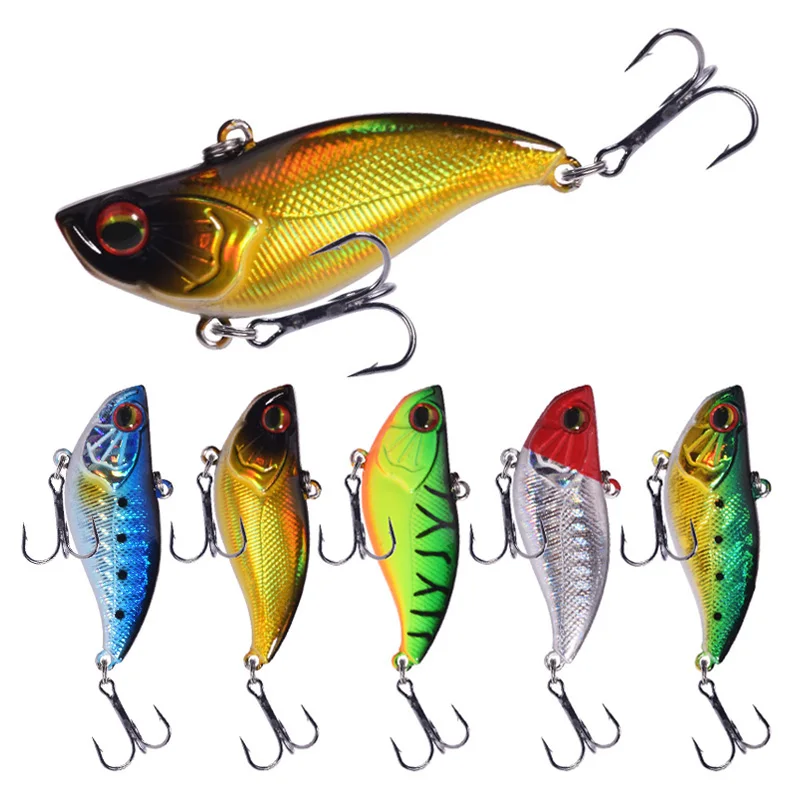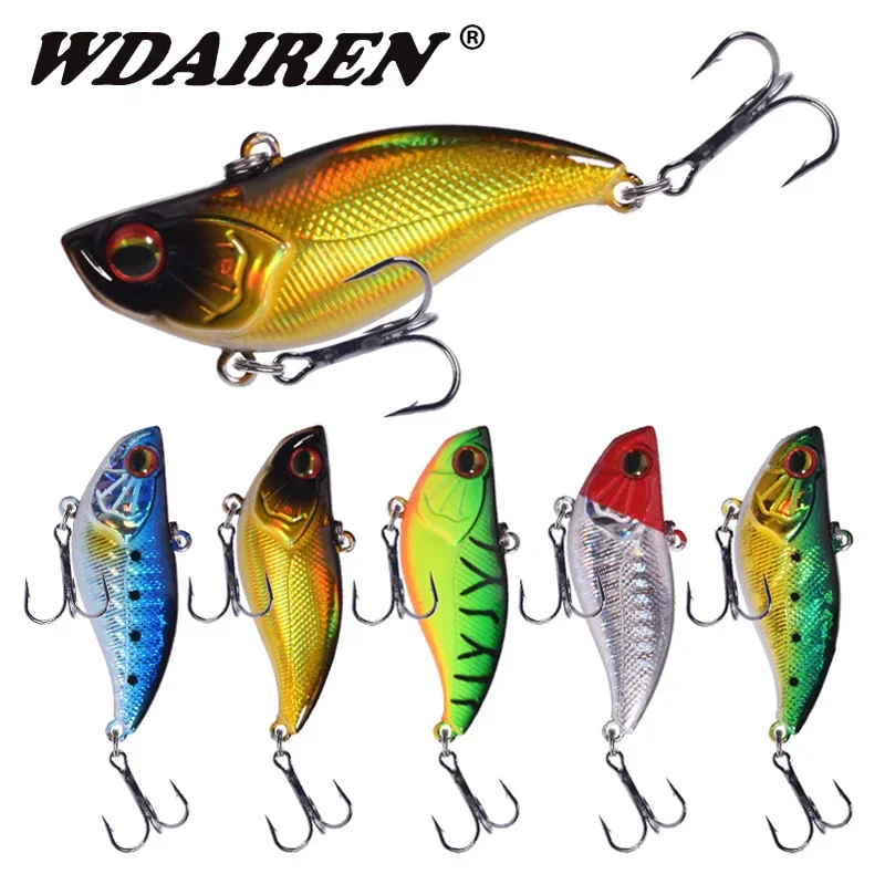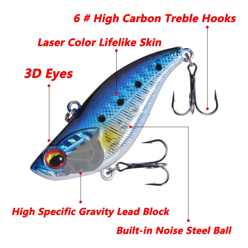 1 Uds. Señuelo de pesca con hundimiento de vibración, 6cm, 14g, lubina de invierno, Wobblers VIB, aparejos, cebo duro Artificial de plástico láser con 6# Ganchos