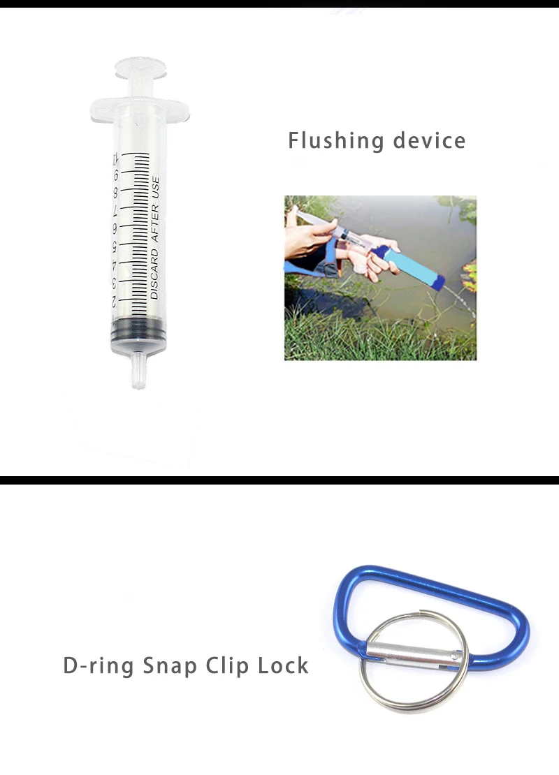 En la naturaleza, no quieres tener la oportunidad de beber agua contaminada.Depende de la pajita de supervivencia del filtro de agua personal de SDS para purificar el agua de lagos, ríos o arroyos.El sistema de filtración de agua con pajita es un filtro portátil y reutilizable que también funciona como purificador de agua de emergencia durante desastres naturales cuando no puede acceder a agua limpia.El sistema de filtrado de agua para senderismo lo mantiene hidratado y se puede utilizar en lugar de una botella de agua.Evite el agua hirviendo y, en su lugar, use la pajita del purificador de agua para exteriores para obtener agua limpia con sabor fresco.Ya sea que esté empacando para exteriores o recolectando suministros de preparación para el día del día del día, es necesario el sistema de filtración de agua de emergencia.