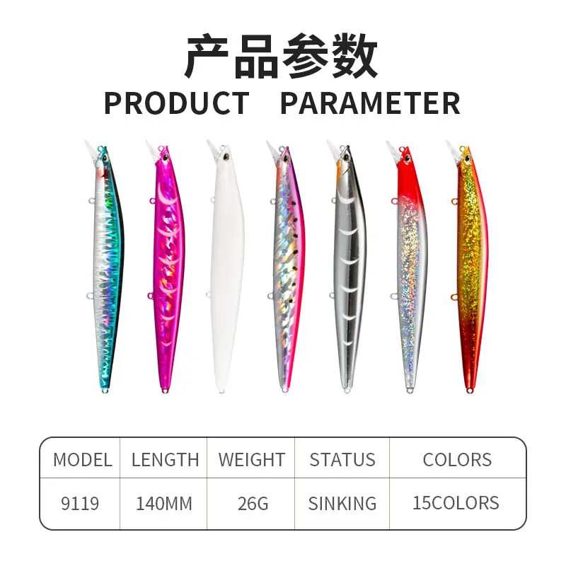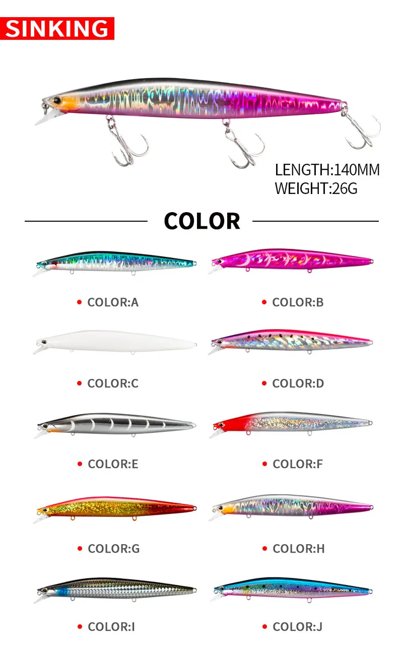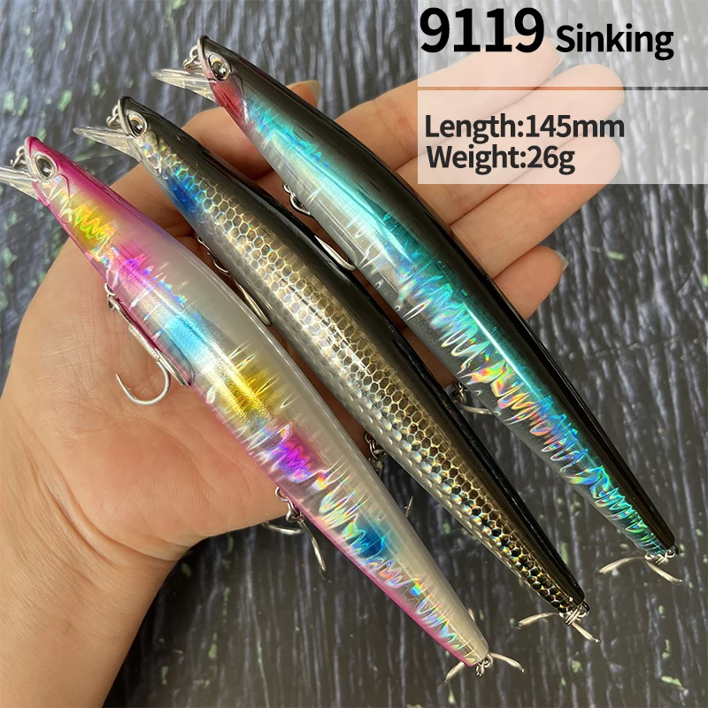 1 Uds 145mm 26g Señuelos de Pesca de pececillo que se hunden Wobbler fundición larga lubina trucha carpa cebo Artificial Jerkbait accesorios de pesca