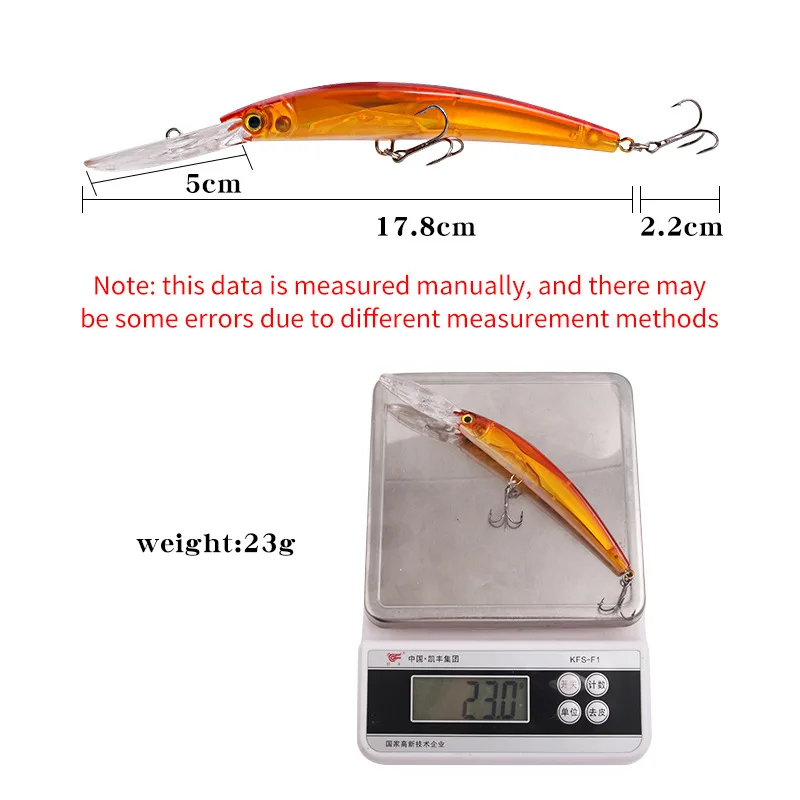 1 Uds 178mm 23g señuelos flotantes grandes y delgados para pececillos Trolling Wobbler cebo Artificial para Lucio Swimbait suministros de pesca aparejos