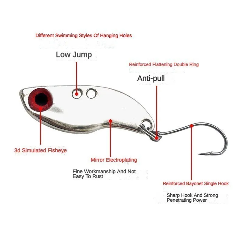 (1) El excelente reflejo del cebo vib que llamará la atención de cualquier pez.El cuerpo del señuelo está bien hecho, el tamaño es perfecto para pescar, vibraron mucho. El acabado de estos cebos con cuchillas es duradero a través del cepillo y los fondos rocosos.