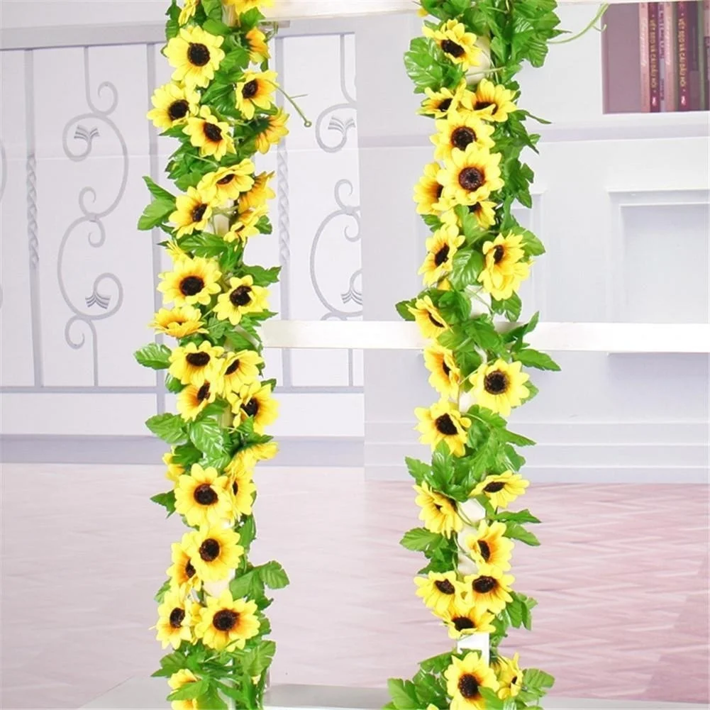 1 Uds 260cm Artificial amarillo girasol guirnalda flor vid boda Floral arco decoración seda