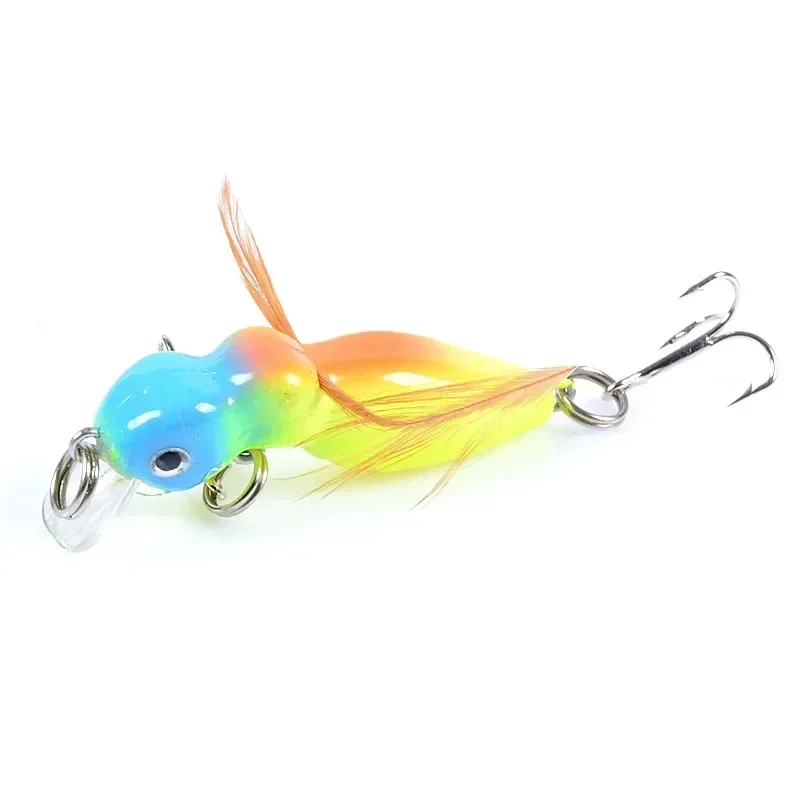 Tipo de señuelo: cebos de plumas de insectosPeso del señuelo: 3,5 gLongitud del señuelo: 45 mmGanchos: 2 * anzuelos triples fuertesOjos: ojos de pez 3DColores:4 colores diferentesPeixe objetivo: chub pálido, lubina, picos, carpa de cheque amarilla, perca china, culter de boca superiorLista de paquetes:1 * señuelo de pesca