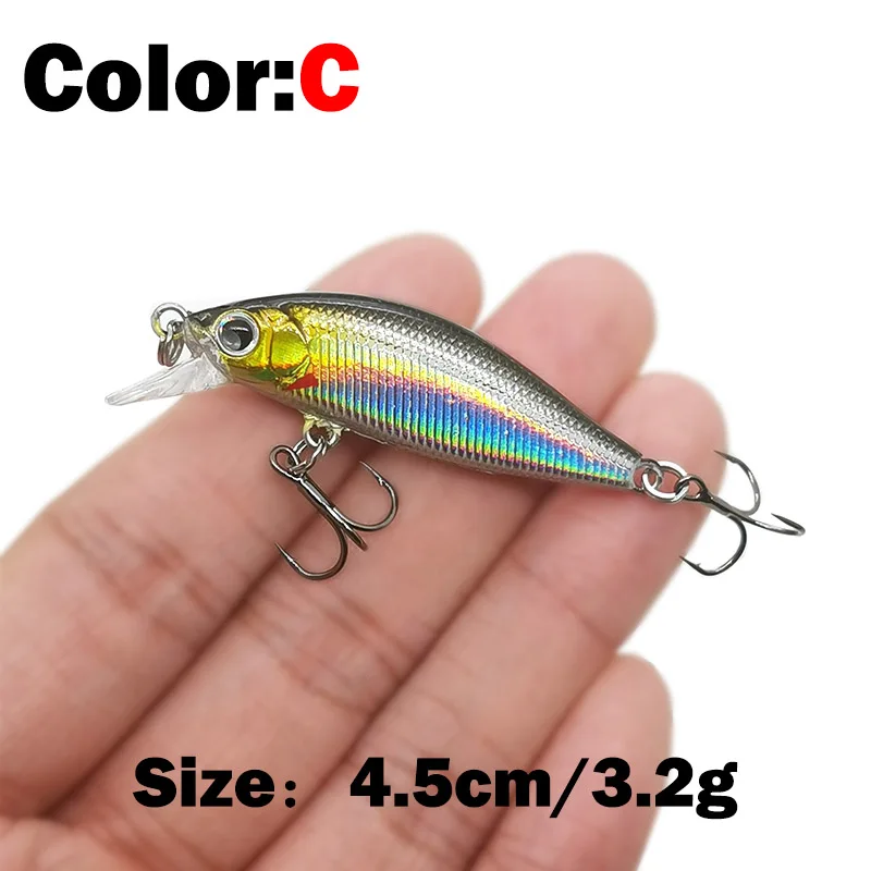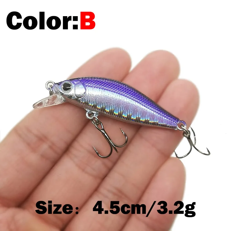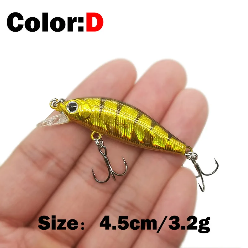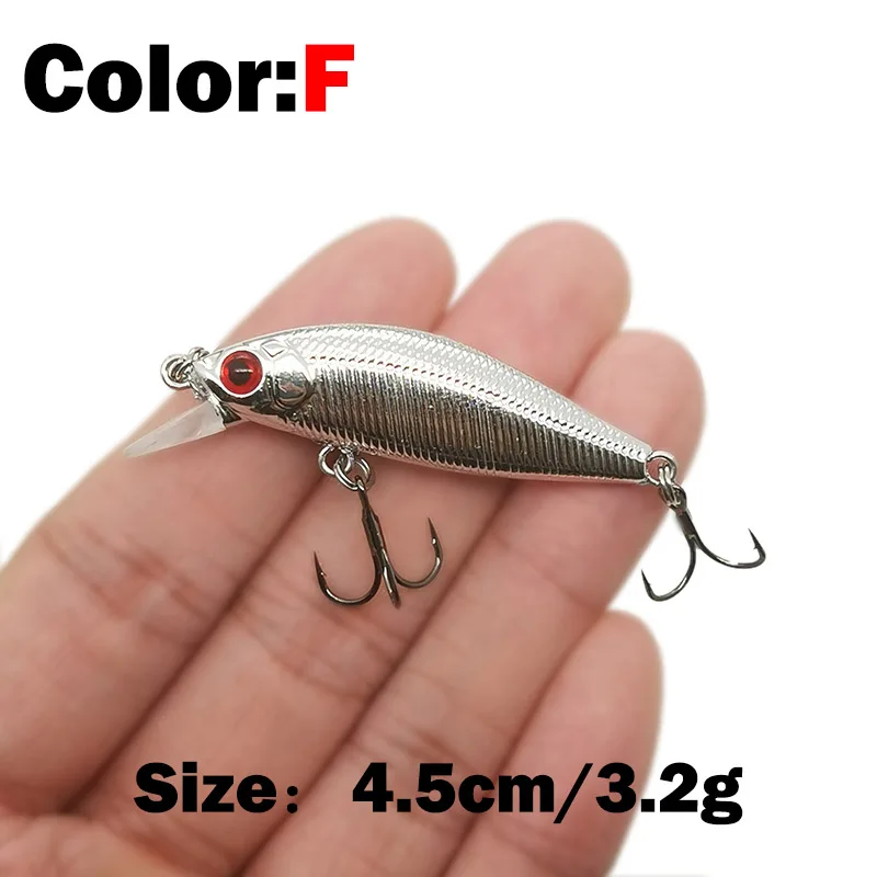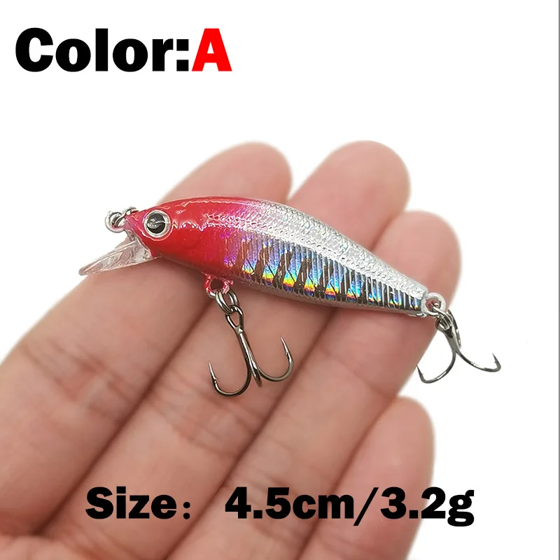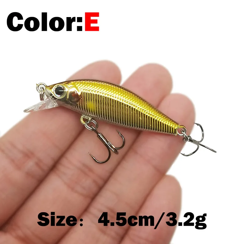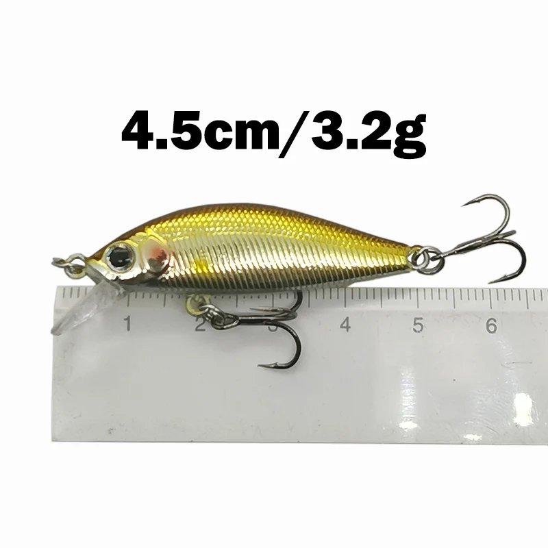 Descripción :1 Uds 4.5cm 3,2g señuelo de pesca calidad Mini señuelo Minnow ojos 3D cebo duro de plástico Pesca Wobblers Artificial Crankbait pesca Baait