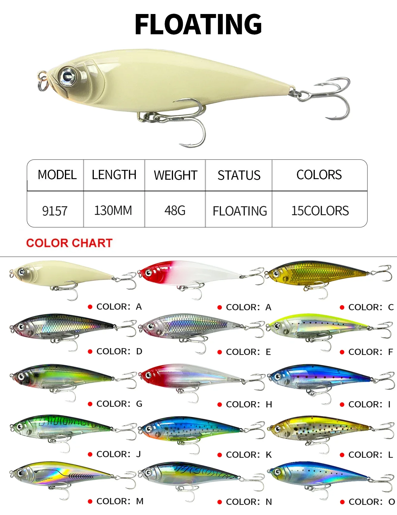 El señuelo de pesca con lápiz flotante de 48 g y 130 mm no es sólo un señuelo; Es una herramienta que se adapta a tu estilo de pesca. Si eres un entusiasta de los cebos o prefieres una recuperación más tradicional, la versatilidad de este señuelo brilla. Su apariencia realista y su movimiento errático lo convierten en un objetivo irresistible para una amplia gama de peces de caza de agua salada. Con su diseño robusto y rendimiento confiable, este señuelo es un complemento esencial para la colección de equipos de pesca de cualquier pescador.