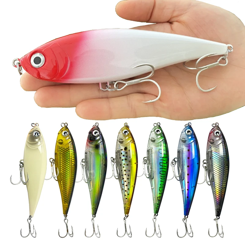 El señuelo de pesca con lápiz flotante de 48 g y 130 mm es un testimonio de la ingeniería de precisión, diseñado para atraer incluso a los peces de caza más exigentes.Su diseño flotante garantiza que se mantenga a flote en la superficie del agua, lo que lo convierte en una excelente opción para la pesca costera.La acción oscilante del señuelo se logra mediante un sistema de transferencia de peso interno meticulosamente elaborado, que imita el movimiento natural de la presa, asegurando una presentación realista difícil de resistir para los peces.