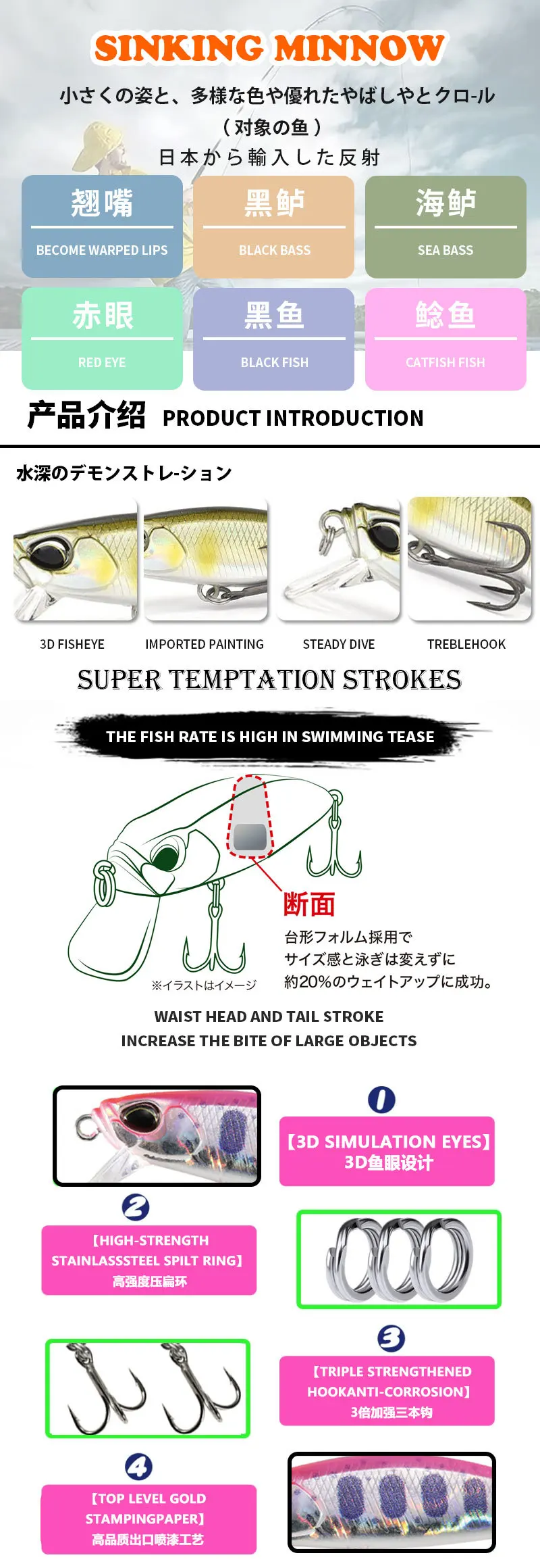 1 Uds 48mm 6,5g Mini suspensión Minnow Señuelos de Pesca cebo duro Artificial Pesca Wobbler para Lucio Jerkbait Swimbait Accesorios