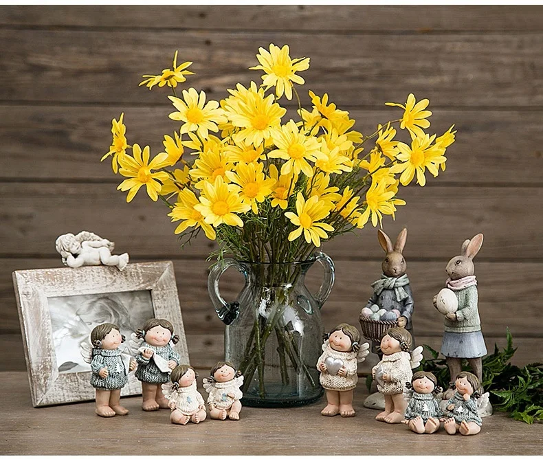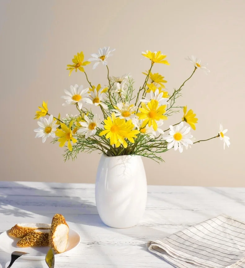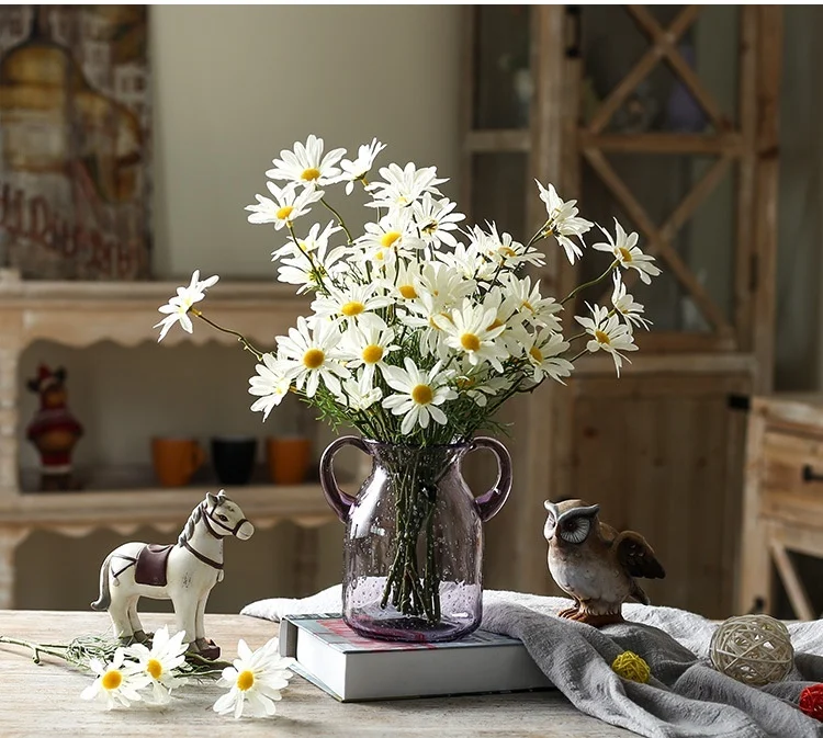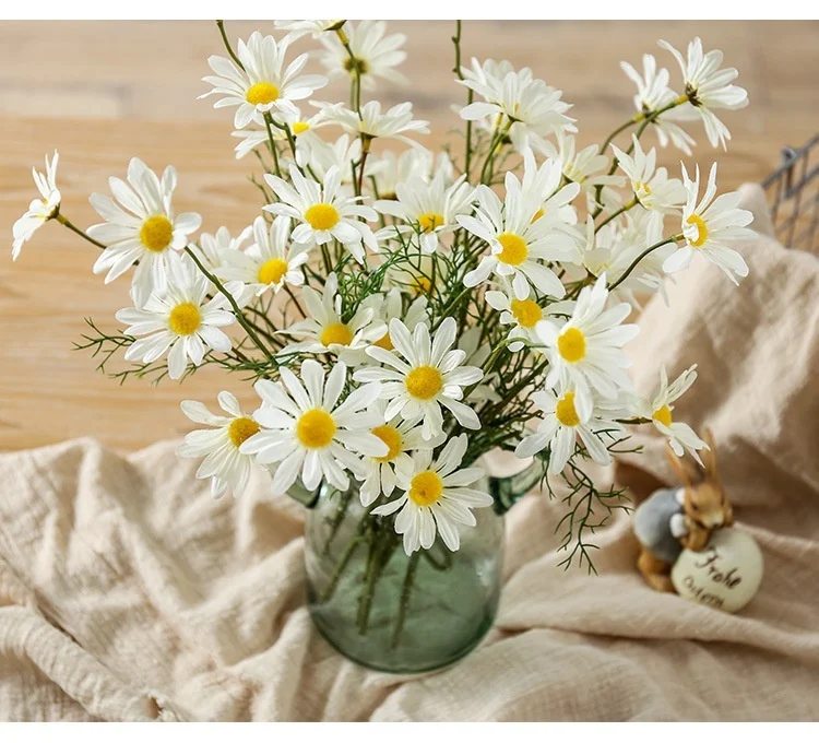 1 Uds. De 5 cabezas de flores artificiales coloridas, ramo de Margarita pequeña, decoración del hogar para fiesta, decoración de jardín de boda, suministros para exteriores