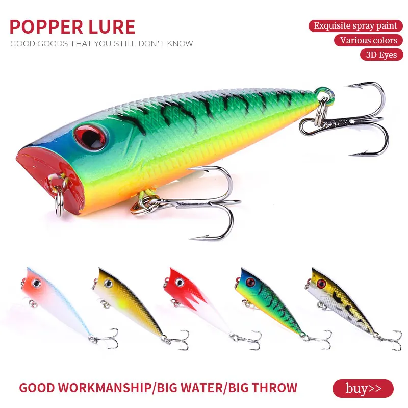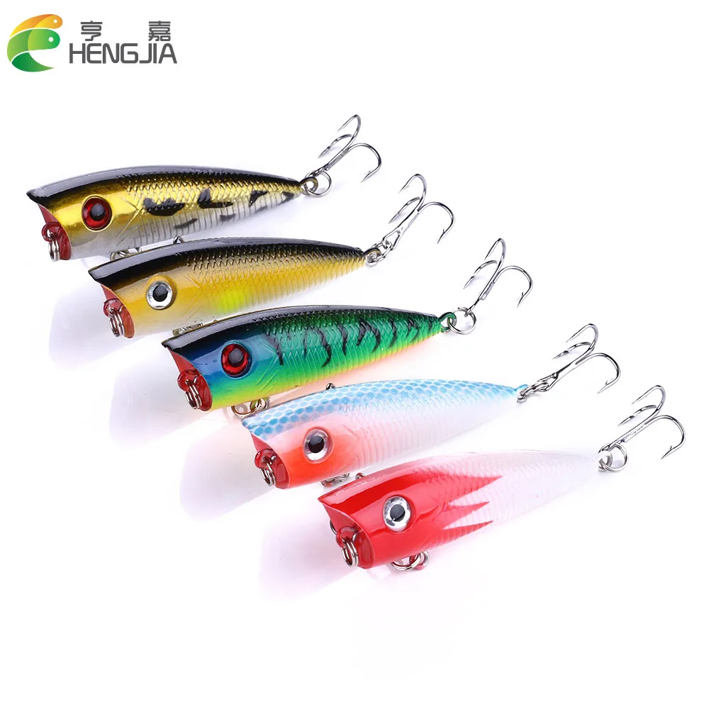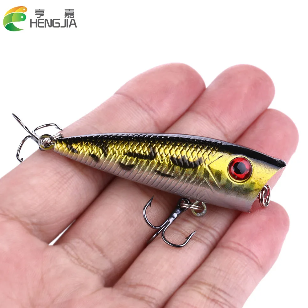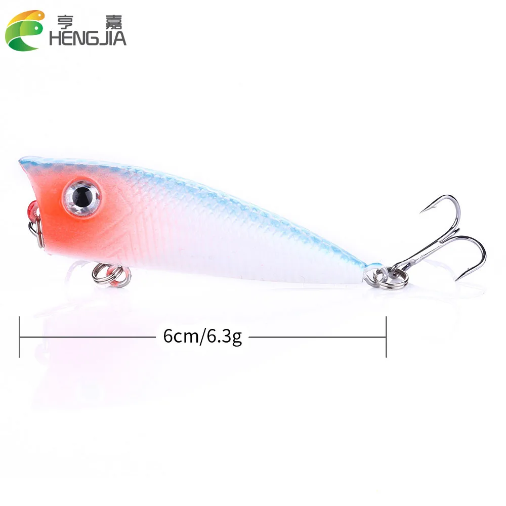HENGJIA 6cm 6,3G Señuelos de Pesca Popper Topwater Lubina flotante Mar Pesca Crank Señuelo Swimbait Wobbler Aparejos de Pesca