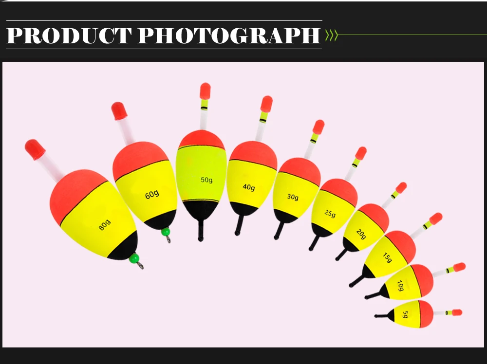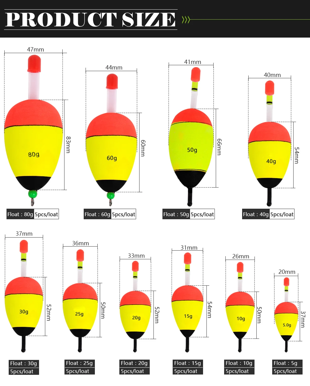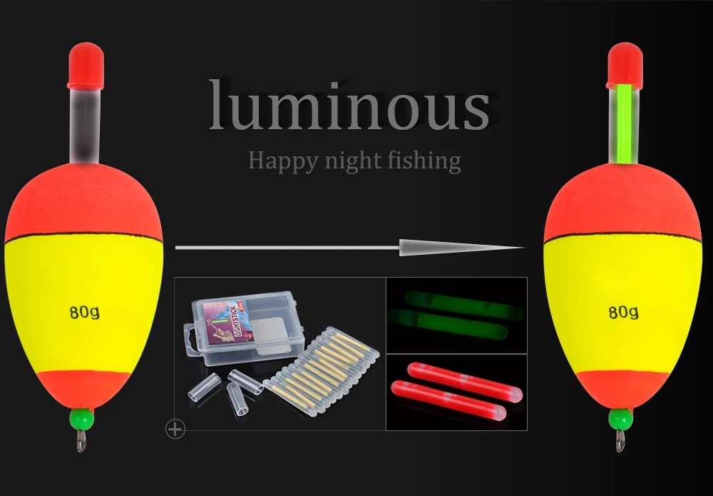 1 Uds 5g 10g 15g 20g 25g 30g 40g 50g 60g 80g flotadores de pesca de espuma luminosa flotador nocturno EVA flotador de espuma grande flotadores de palo de luz