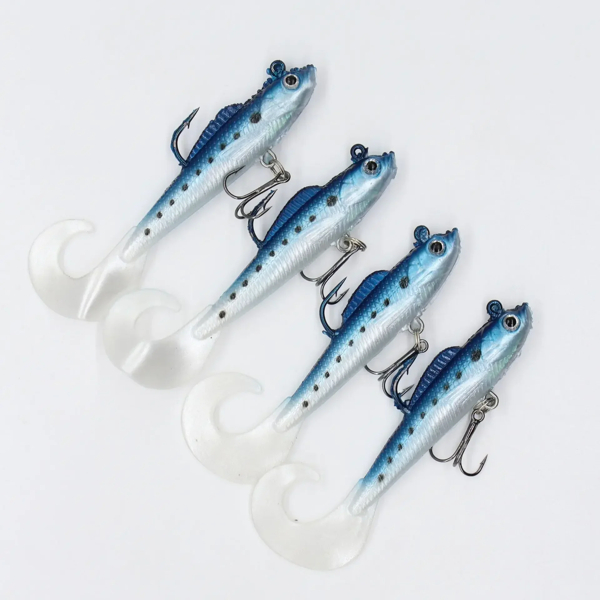1 Uds 90mm 9.5g cabeza de plantilla de trucha PVC Señuelos de pesca natación cola larga cebo suave de silicona cebos artificiales lubina Swimbait Wobblers