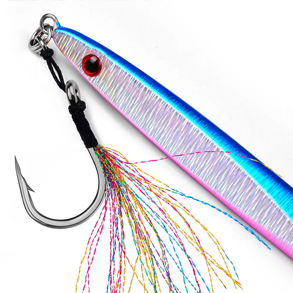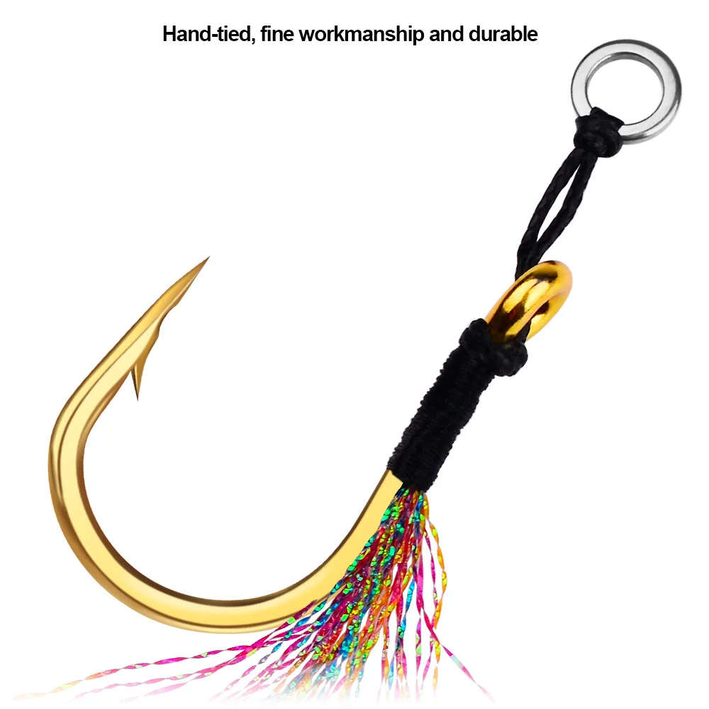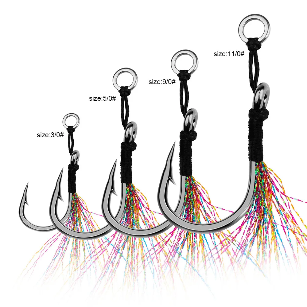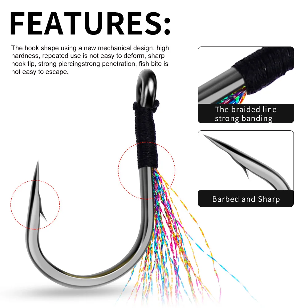 1 Uds. Anzuelo de Pesca de acero rico en carbono con púas, ganchos dobles individuales, accesorios de plumas de hilo, anzuelos de Jigging lento de acero al carbono para Pesca