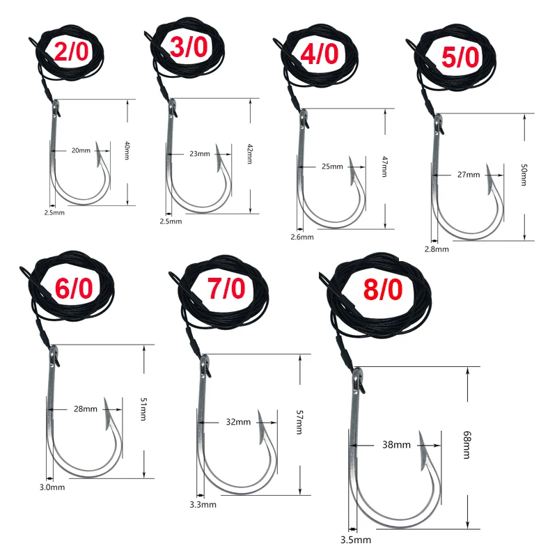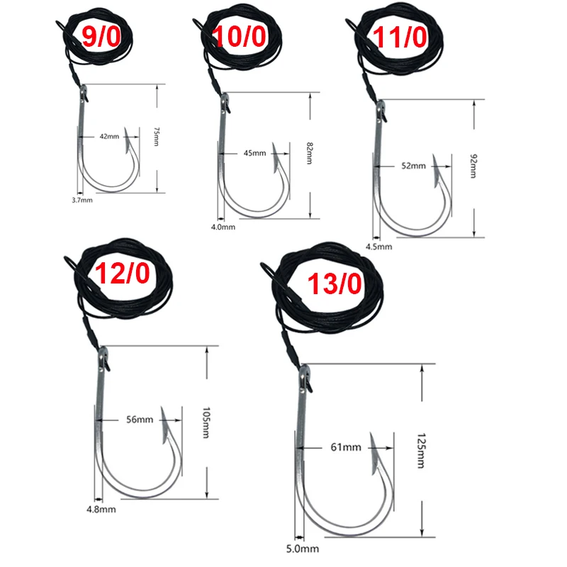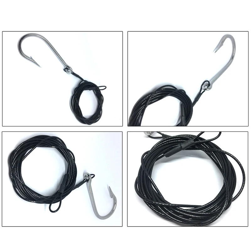 1 Uds. Anzuelos de pesca de tiburón, anzuelos de pesca de atún con cable recubierto de nailon de 9,8 pies (380-400 libras), anzuelos de aguas profundas para herramientas de peces grandes