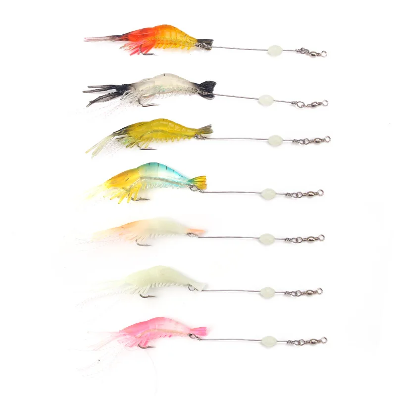 1 Uds. Cebo de camarón con cuentas luminosas, 8,5 cm-5g, señuelo suave que se hunde, larva de silicona, Swimbait, gambas sin malezas, gummifische leurre cebo de pesca