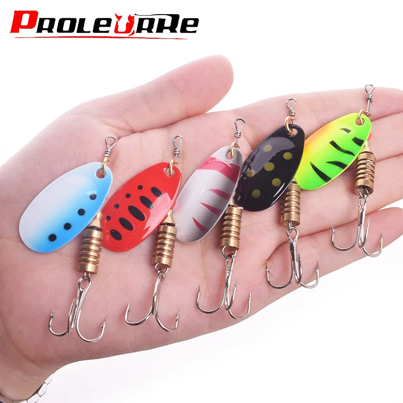 1 Uds cebo giratorio 2,5g 3,5g 5,5g señuelo de pesca Wobblers de Metal cuchara giratoria cebo con anzuelos triples para aparejos de pesca señuelo