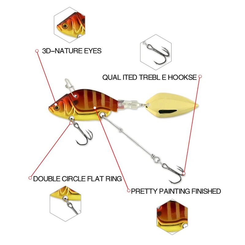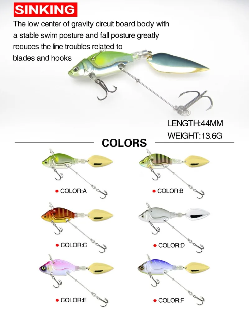 1 Uds. Cebo giratorio de Metal VIB con vibración, cuchara giratoria, Señuelos de Pesca 13,6g 4,4 cm, plantillas para trucha, Pesca de invierno, cebos duros, aparejos de Pesca