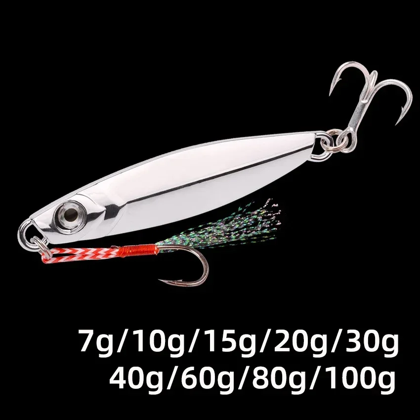 1 Uds. Cebo de pesca de mar de Color plateado 7g/10g/20g/30g/40g/60g/80g/100g señuelo de Jigging señuelo de pesca de Metal señuelos de agua salada