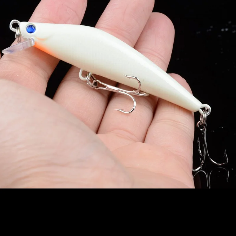 Cebos de pesca nocturnos luminosos 3D, 8cm, 8g, señuelos pececillos de lubina con anzuelos triples, cebos duros artificiales, aparejos de Pesca para Lucio y carpa, 1 Uds.
