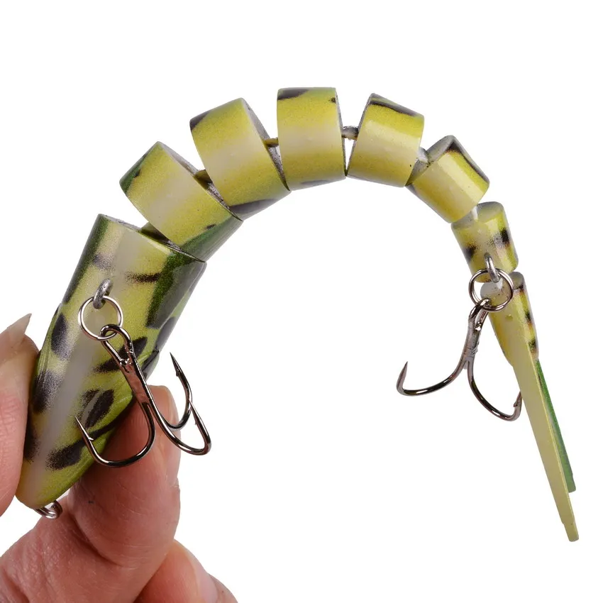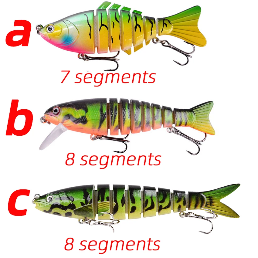 *Características del señuelo:1. Segmentos Cuerpo: El diseño elástico de conexión del cuerpo, la tela testil, permite que el señuelo se realice en el agua con fluidez, nade rápidamente en trozos en trozos, como un pez real.