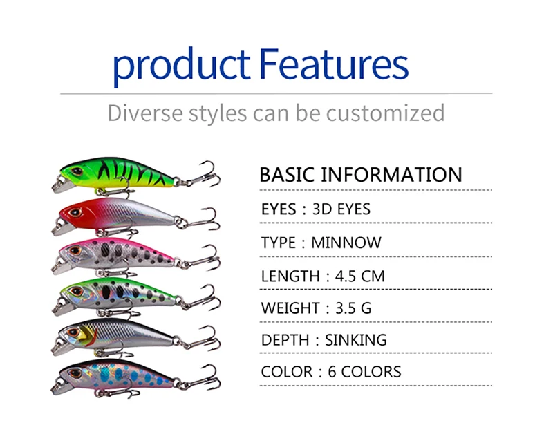 1 Uds Mini 4,5cm 3,5g Señuelos de pesca 2020 hundimiento Wobblers cebo duro Minnow