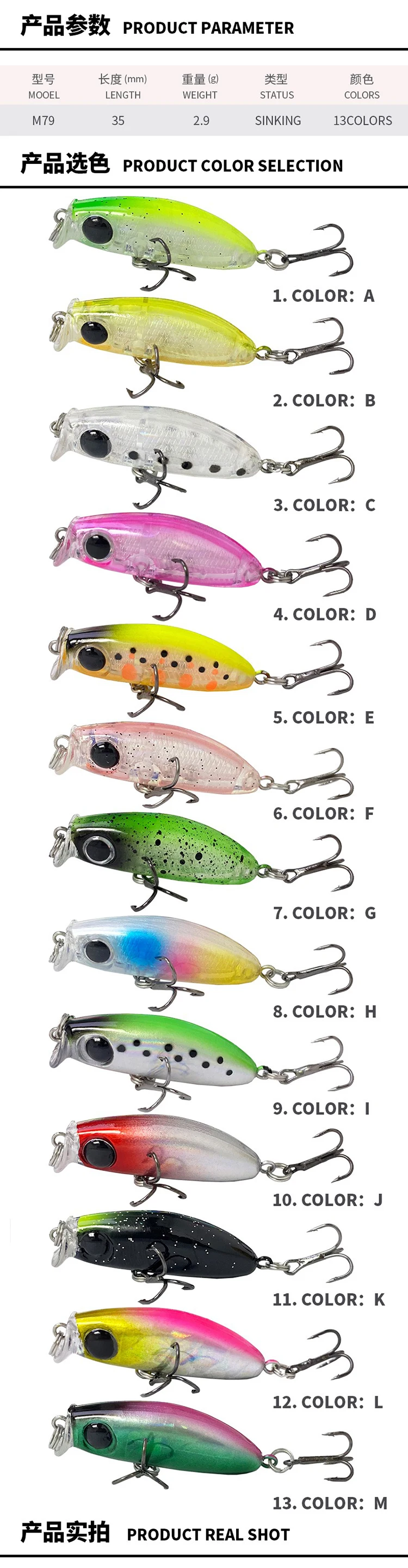 1 Uds mini Minnow Señuelos de Pesca Wobblers 3,5 cm 2,5g hundimiento lento trucha cebo duro Artificial lubina Crankbait aparejos de pesca de carpa