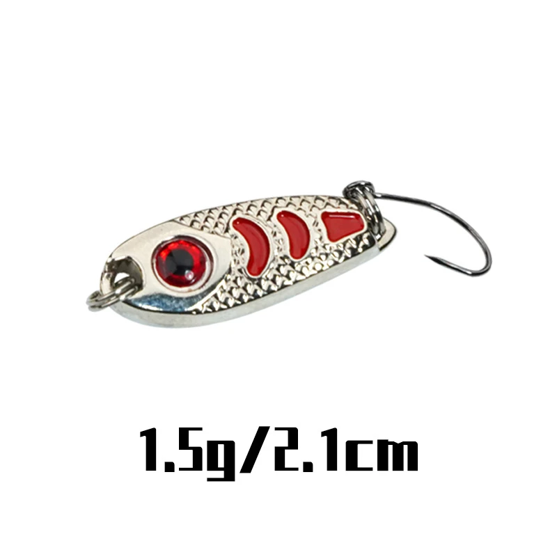 1 Uds Mini señuelo de Metal 1,5g 2,5g 3,5g 5g cebo duro punto rojo luminoso aparejos de pesca con mosca Wobblers Isca pesca con cuchara Artificial