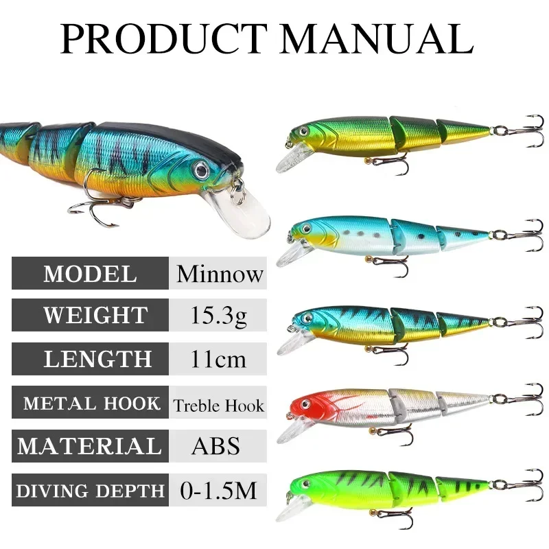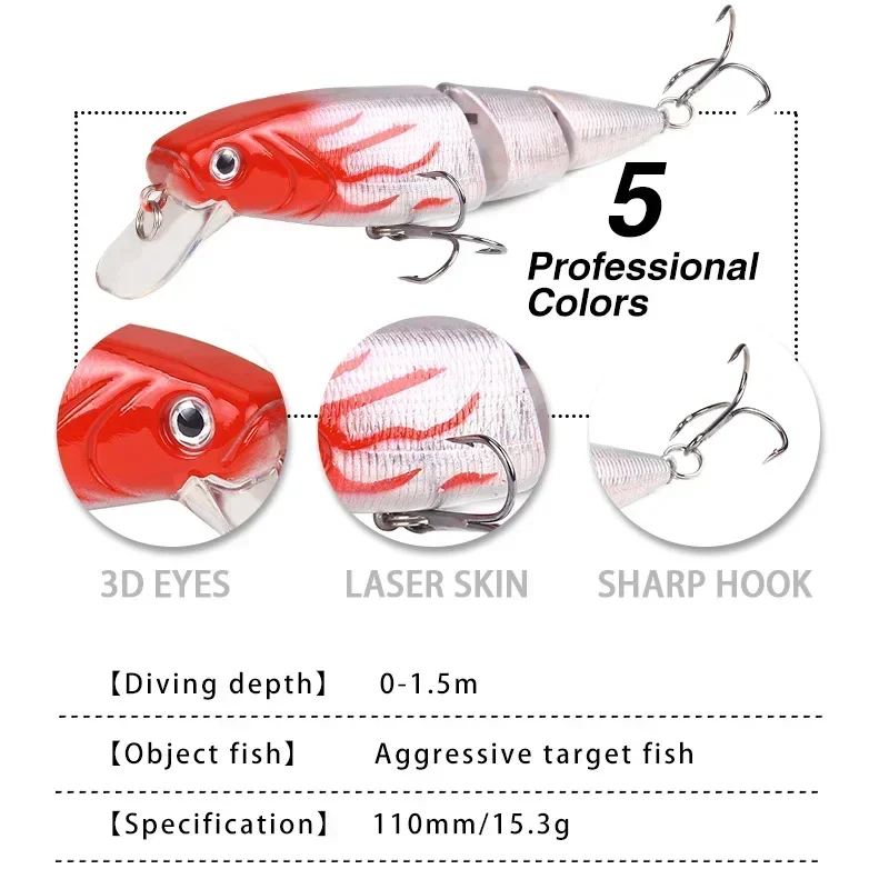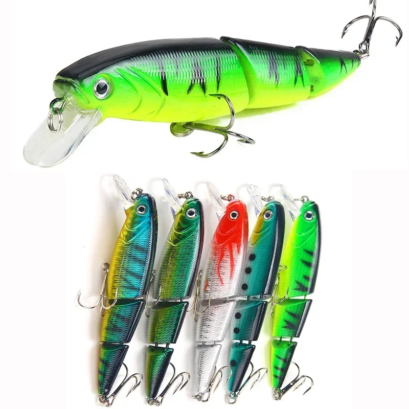 1 Uds. Señuelo de pesca duro con ojos de pez 3D, multisección, lubina, Crankbaits, Minnow, cebo Artificial falso, traje para pescar, aparejos de carpa