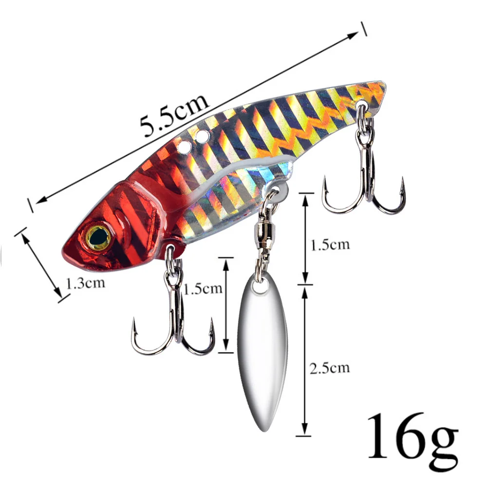 1 Uds pesca 12g 16g Metal VIB señuelo duro con cuchara Spinner ojos 3D vibraciones vívidas pintura señuelo de pesca cebo aparejos de pesca