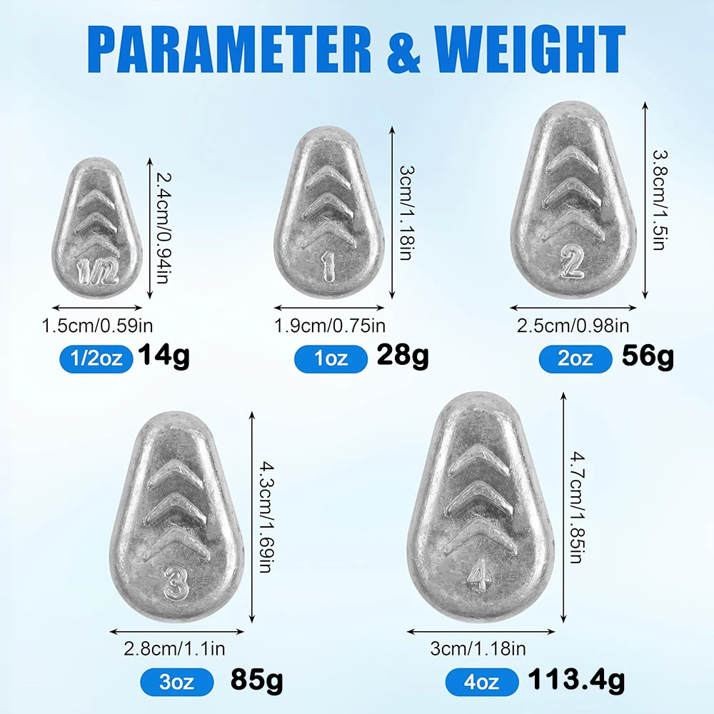 Amplia aplicación: las plomos sin rollo son ideales para la pesca con surf en agua salada y la pesca en agua dulce, como pompano, croaker o halibuta en surf y bagre o lubina en el río.Ideal para hacer aparejos de bagre, aparejos de plomo deslizantes, aparejos de carolina, aparejos de 3 vías, etc.