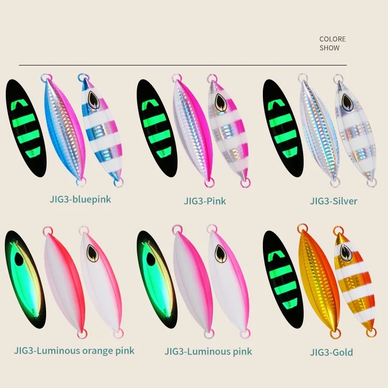 1 Uds plantilla lenta 40g 60g 80g 100g 200G señuelo de pesca fundición Jigging cebo cuchara Metal pescado agua salada Artificial cebo duro aparejos