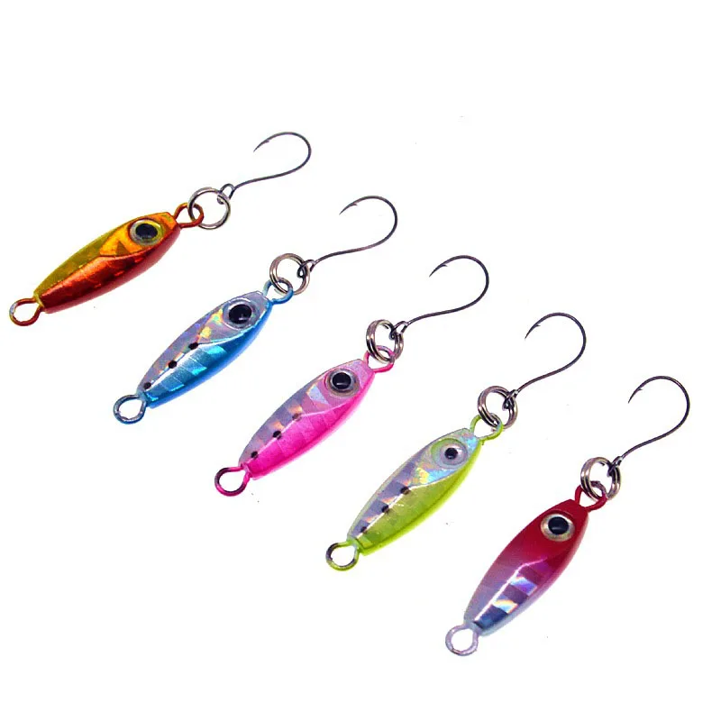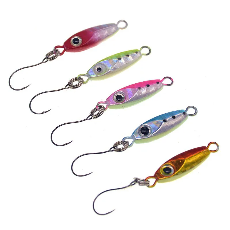 Descripción :1 Uds plantilla de Metal 3g 6g cuchara de pesca señuelo 5 colores Iscas Artificiais plantilla de Metal señuelo rebanada Jigbait cuchara un solo gancho Jigging