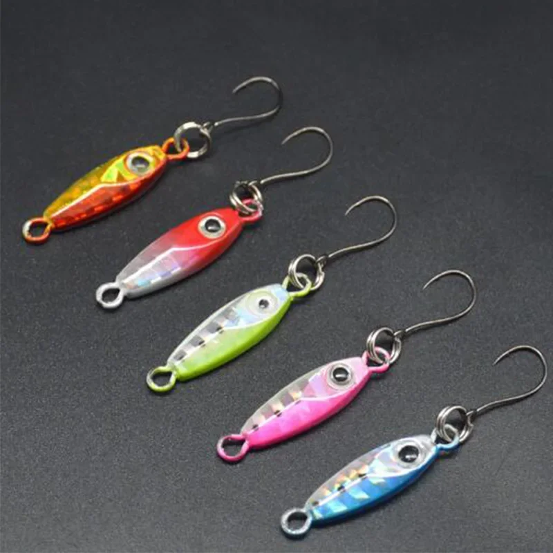 Descripción :1 Uds plantilla de Metal 3g 6g cuchara de pesca señuelo 5 colores Iscas Artificiais plantilla de Metal señuelo rebanada Jigbait cuchara un solo gancho Jigging