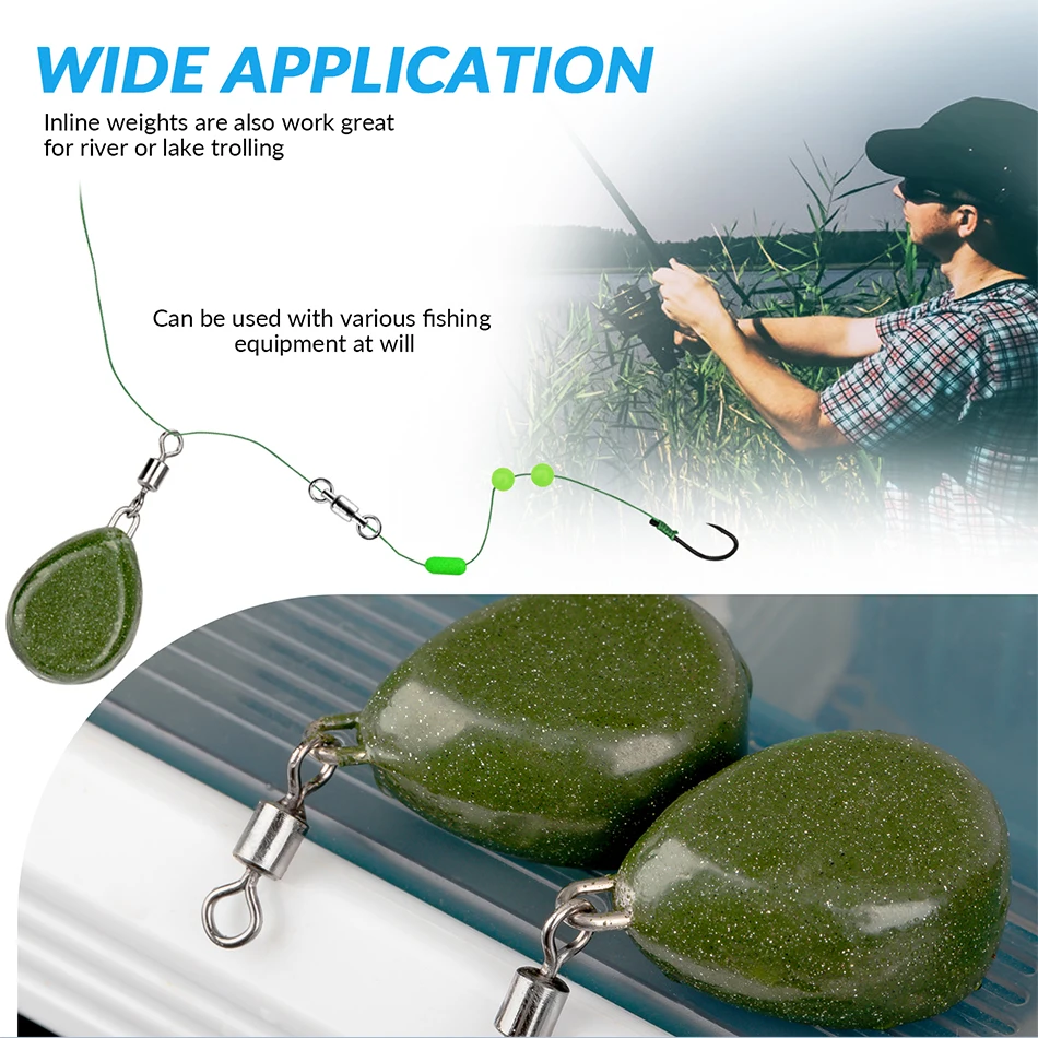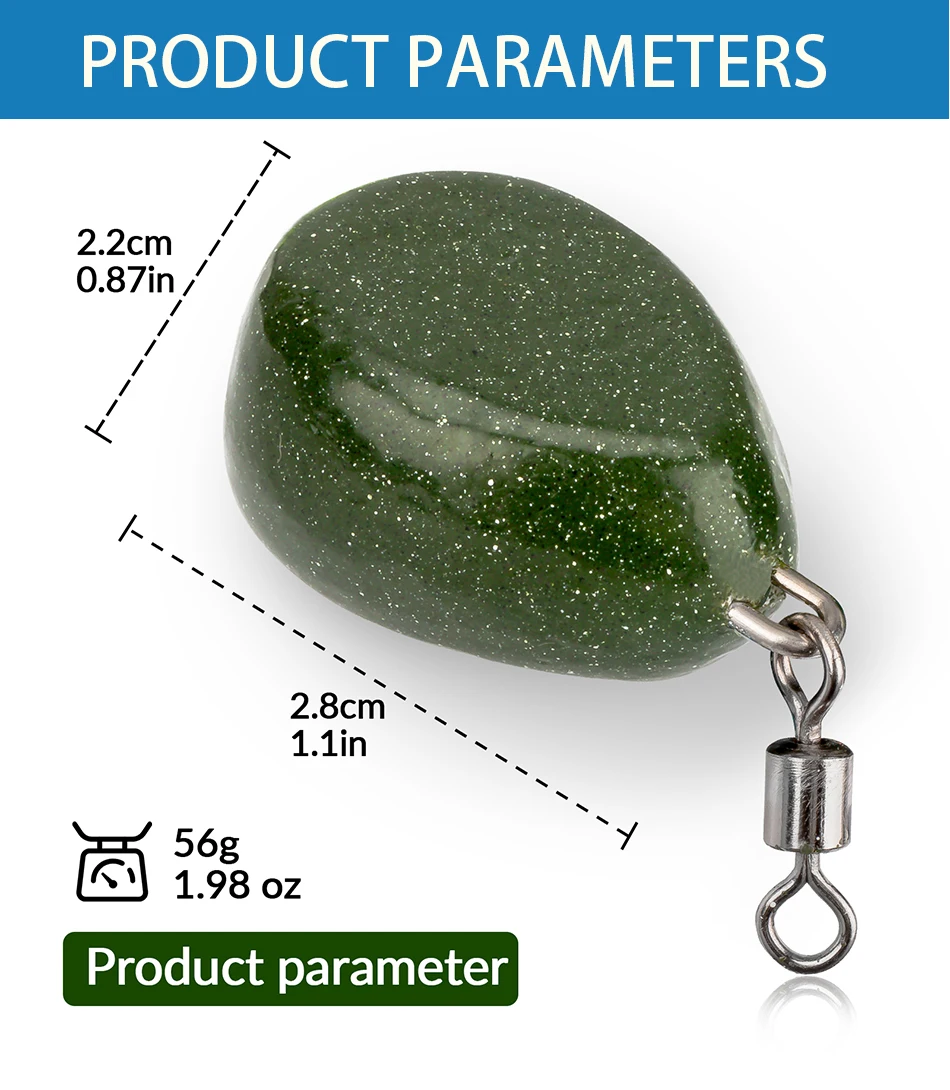 1 Uds. Plomo de pesca 56g 1,98 oz, plomos de pesca con pesas giratorias de piedra verde para pesca de carpa y trucha