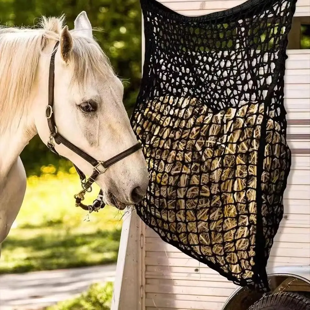 - Soft but strong with the perfect size holes(3x3cm) to not frustrate the horse, but still allow the horse to eat more slowly.