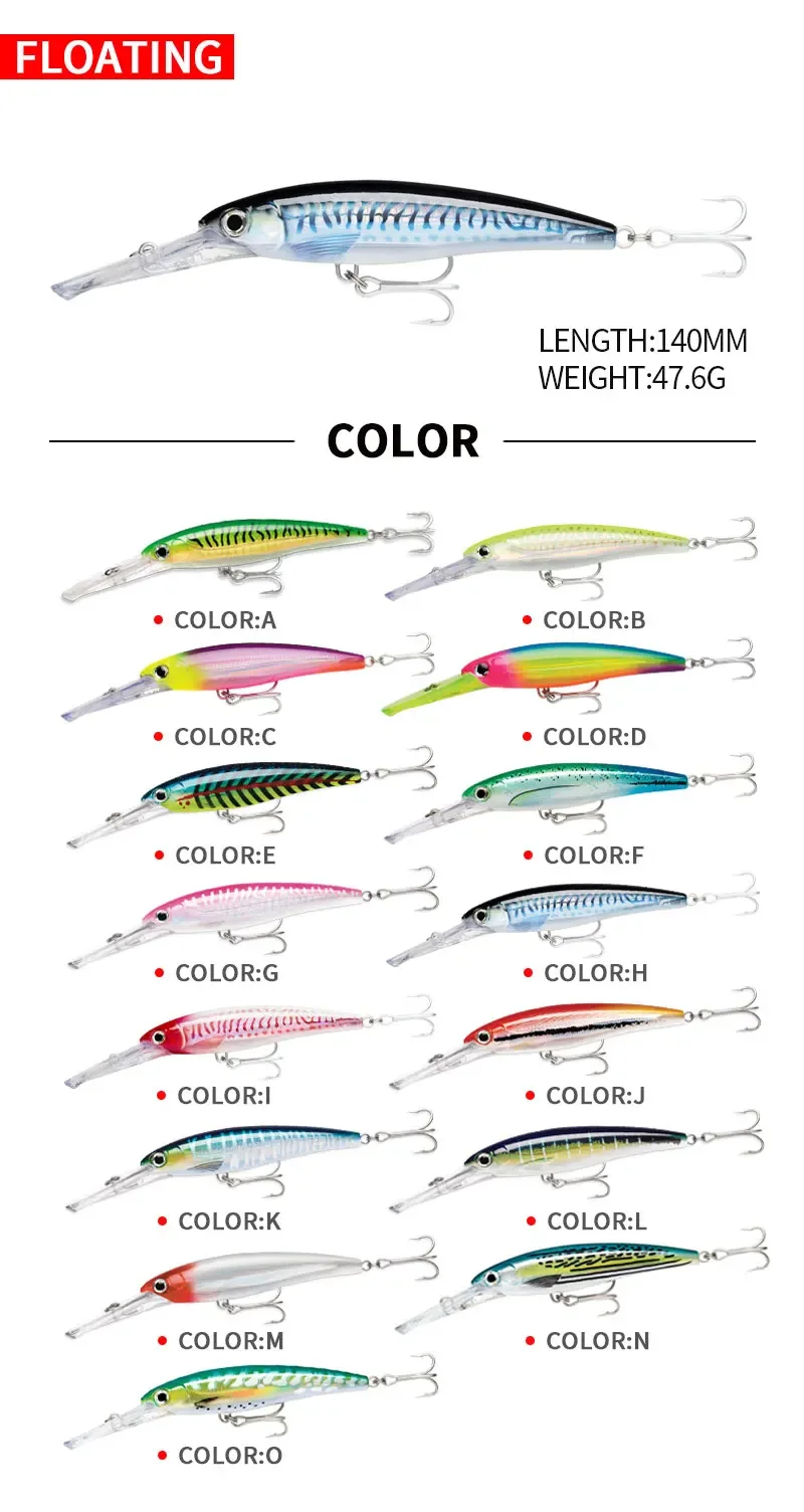1 Uds. Señuelo de pececillo grande 140mm 47,6g Trolling Wobbers Pesca cebo Artificial fundición de buceo lubina cebo de Pesca 9131