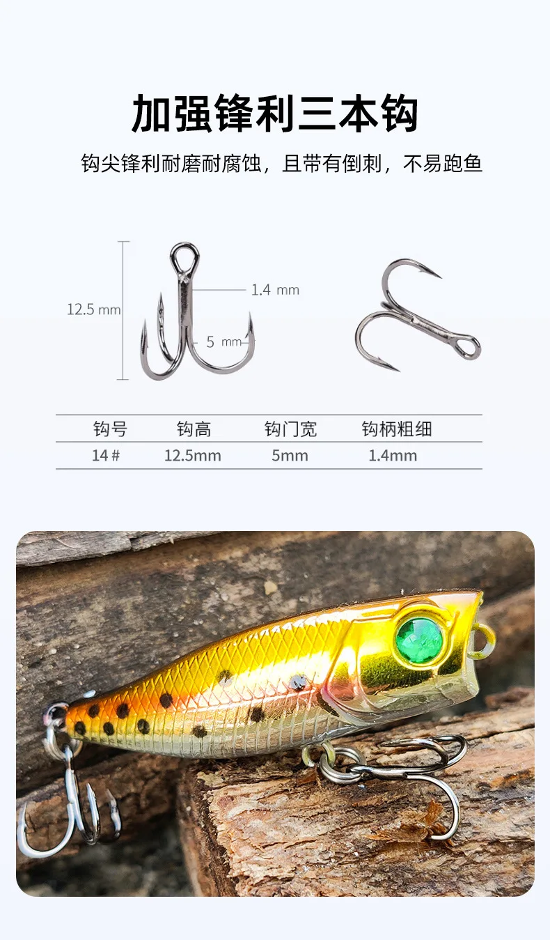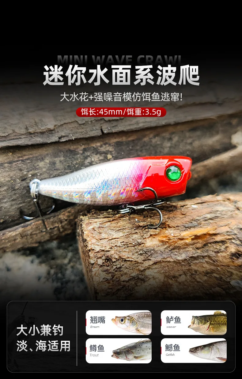 1 Uds señuelo de pesca de agua superior Mini Popper señuelo 40mm 3g trucha Artificial Swimbait Minnow Popper Wobblers Mini señuelo duro